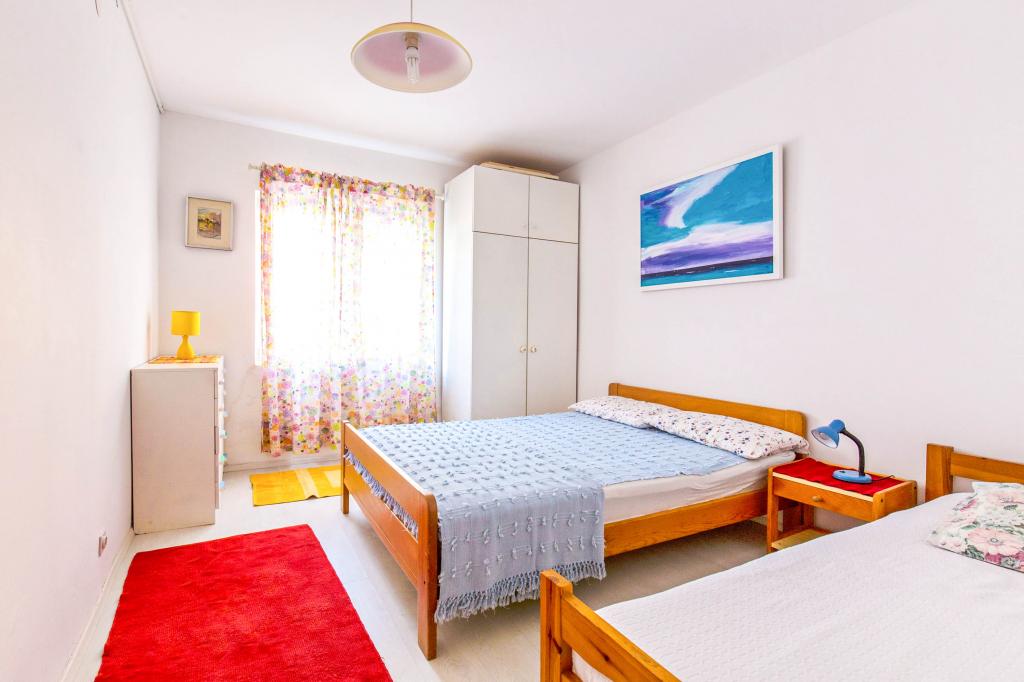 Apartman se nalazi u Igranima, mjestu smještenom između prekrasnih morskih plaža i padina Biokova. Iznad mjesta diže se vitki zvonik crkve Gospe od Ružarija koje mjestu daje lijepu vizuru. Apartman se sastoji od dvije spavaće sobe, dnevnog boravka, kuhinje i kupaonice te velike okućnice (62 m2) na koju svaka soba ima izlaz. Okućnica je oplemenjena cvijećem, prostorom za sjedenje, roštiljem i ugodnim hladom. Apartman je opremljen za ugodan boravak 5 odraslih osoba; osigurani su posteljina i ručnici, potrebno posuđe i pribor. Površina apartmana je 52 m2, a udaljen je 50 m od mjesne plaže, 100 m od samoposluge, poštanskog ureda i turist biroa. Jedno parkirno mjesto je osigurano u blizini apartmana. Apartman je klimatiziran i ima bežični pristup internetu. Radujem se vašem dolasku! Jadranka Šimić