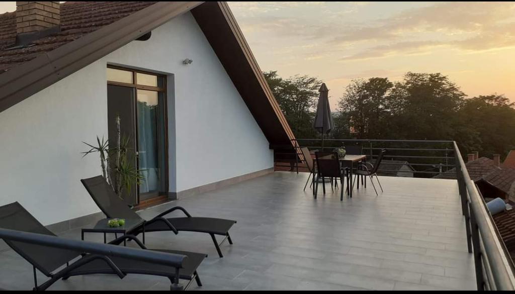 Apartman se nalazi u potkrovlju obiteljske kuće koji pruža mir i prekrasan pogled na rijeku Dunav. Apartman posjeduje 4 +2 pomoćna ležaja. Udaljenost apartmana i centra je 5 minuta hoda.