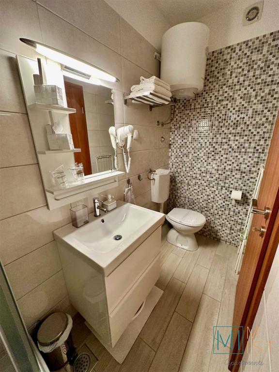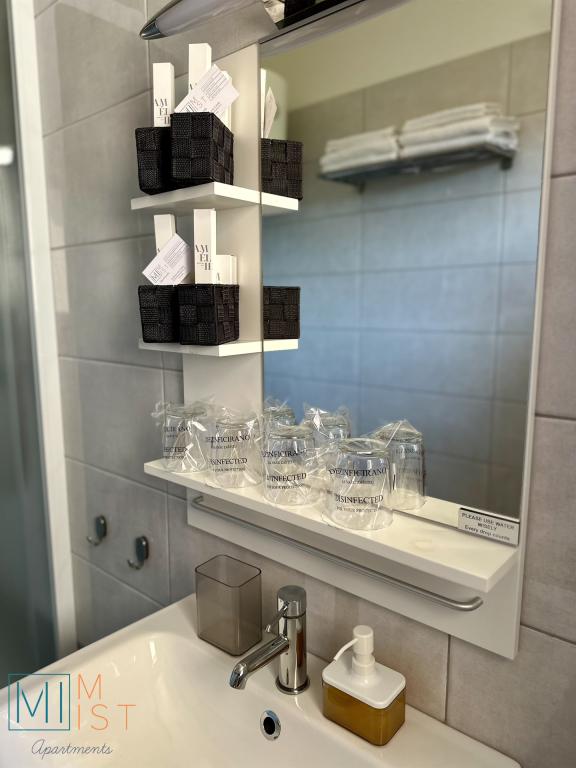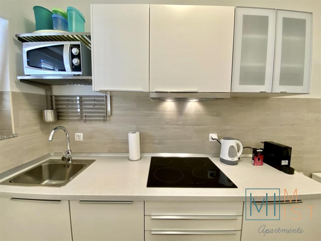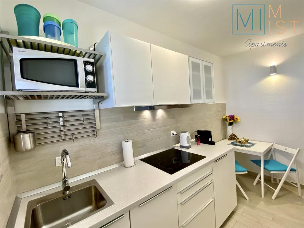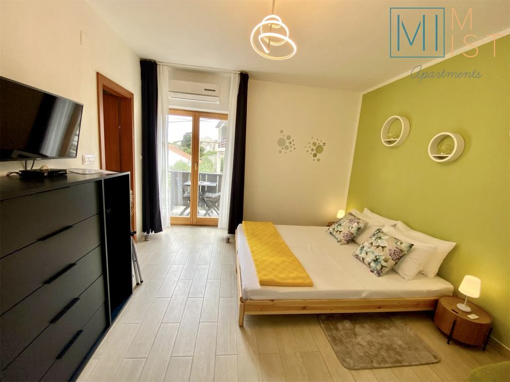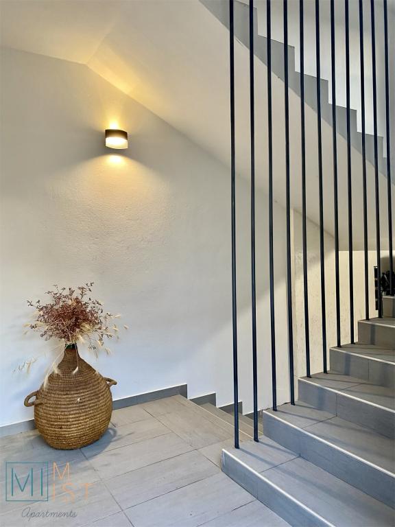 MIST apartmani dio su prvog kata kuće udaljene svega 100 metara od mora, a uređeni su s ciljem stvaranja toplog i modernog ugođaja daleko od vašeg doma. Bez obzira na to koji apartman odaberete, pronaći ćete uređenje koje je istovremeno privlačno i udobno. Kako bi vaš boravak bio što ugodniji, u podnožju stepenica na raspolaganju su vam perilica rublja s potrebnim deterdžentima, glačalo i daska za glačanje te usisavač i ledomat. Budući da vam je i mali vrtni roštilj na raspolaganju, sigurni smo da će stol (kutak za roštiljanje) u malom vrtu biti pun pogodak ukoliko ste grill majstor!