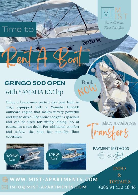 U ponudi imamo i gliser koji možete unajmiti ili koristiti uslugu transfera uz našg iskusnog skipera.
