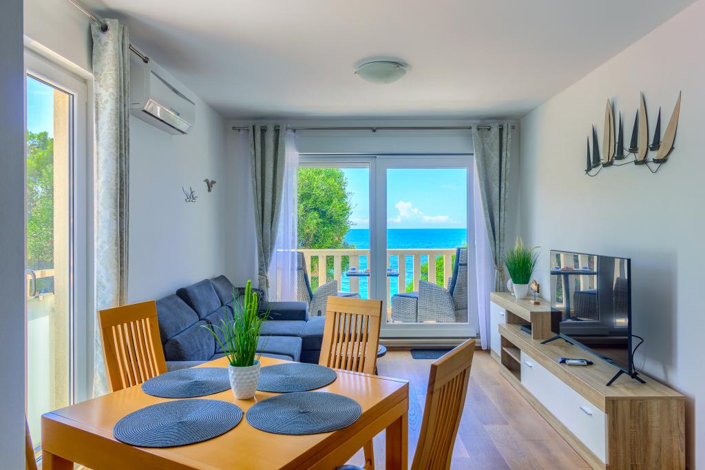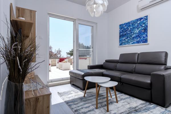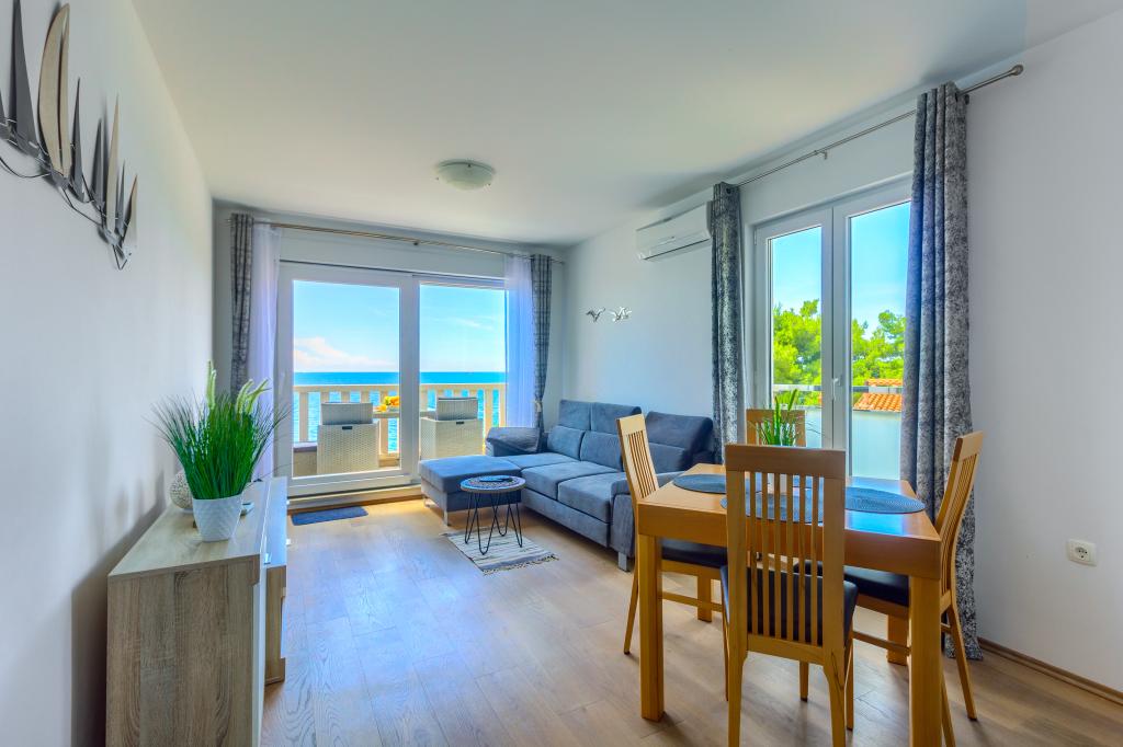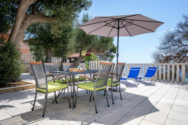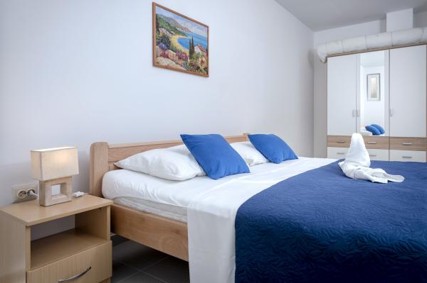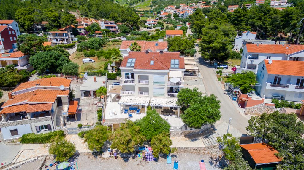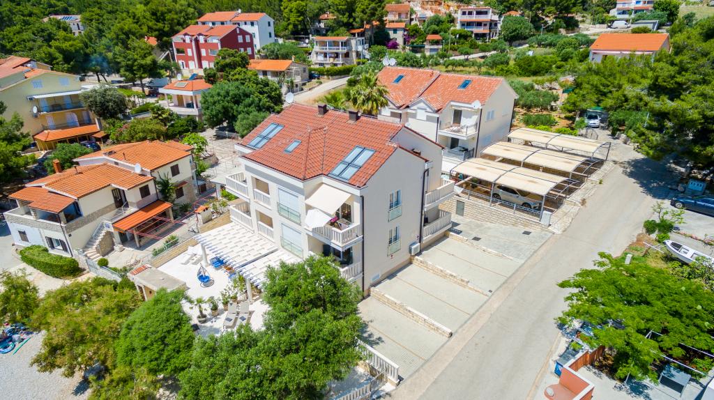 Novosagrađeni i suvremeno opremljeni apartmani nalaze se uz samu plažu mirnog mjesta Ivan Dolac. Apartmani Unit 1 i Unit 6 su za 4 osobe, sastoje se od spavaće sobe s bračnim krevetom 160 x 200, kupaonice s tuš kabinom, kuhinje i blagovaonice, te dnevnog boravka sa SAT-TV-om i kaučom na razvlačenje, te terase s prekrasnim pogledom na plažu, more i otoke. Apartmani P1 i P2 su za 8 osoba, sastoje se od 3 spavace sobe i kaucem na razvlacenje u dnevnom boravku, 2 kupaonice, potpuno opremljenom kuhinjom s perilicom posuđa, blagavaonicom te stolom za blagovanje na velikoj terasi ispred s pogledom na more. Apartman P2 ima veću kvadraturu od P1, jer ima cijelu jednu spavaću sobu i kupaonicu na katu ispod. Restoran i kafići nalaze se svega 20-ak metara, a trgovina 100-ak metara od apartmana. Iako se kuća nalazi u samom centru ovog malog turističkom mjesta, pruža potpuni mir i privatnost jer su gosti većinom obitelji s malom djecom koji uživaju u prekrasnim plaža i kristalno čistom moru.