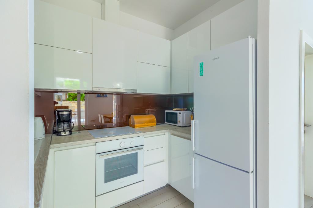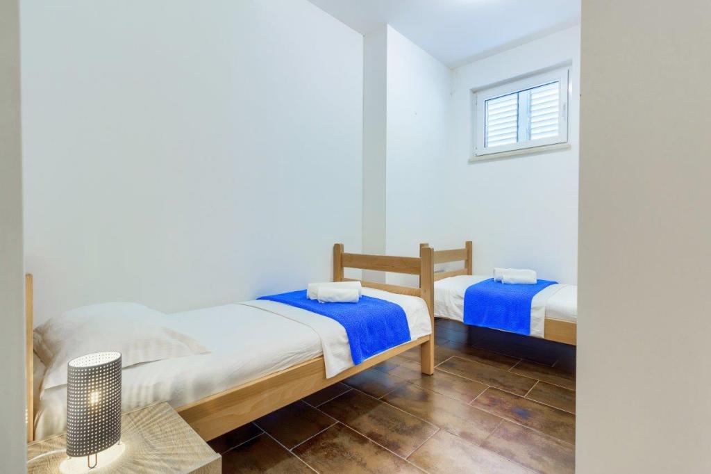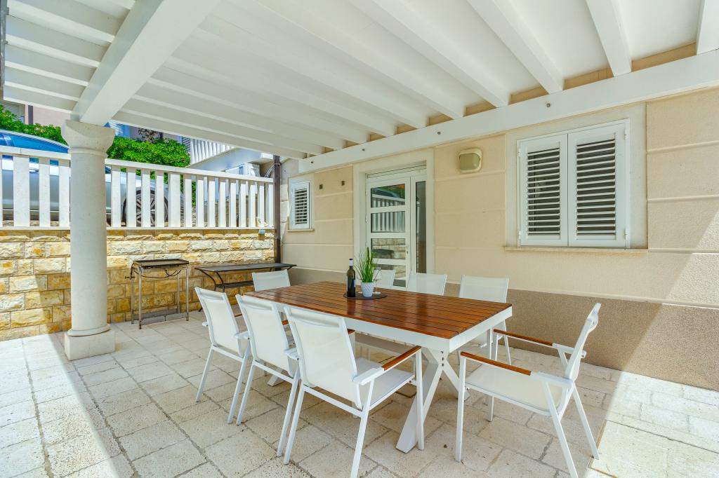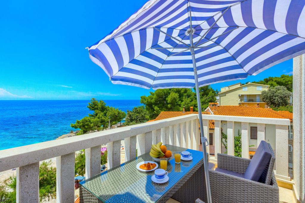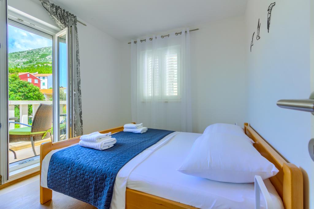 Novosagrađeni i suvremeno opremljeni apartmani nalaze se uz samu plažu mirnog mjesta Ivan Dolac. Apartmani Unit 1 i Unit 6 su za 4 osobe, sastoje se od spavaće sobe s bračnim krevetom 160 x 200, kupaonice s tuš kabinom, kuhinje i blagovaonice, te dnevnog boravka sa SAT-TV-om i kaučom na razvlačenje, te terase s prekrasnim pogledom na plažu, more i otoke. Apartmani P1 i P2 su za 8 osoba, sastoje se od 3 spavace sobe i kaucem na razvlacenje u dnevnom boravku, 2 kupaonice, potpuno opremljenom kuhinjom s perilicom posuđa, blagavaonicom te stolom za blagovanje na velikoj terasi ispred s pogledom na more. Apartman P2 ima veću kvadraturu od P1, jer ima cijelu jednu spavaću sobu i kupaonicu na katu ispod. Restoran i kafići nalaze se svega 20-ak metara, a trgovina 100-ak metara od apartmana. Iako se kuća nalazi u samom centru ovog malog turističkom mjesta, pruža potpuni mir i privatnost jer su gosti većinom obitelji s malom djecom koji uživaju u prekrasnim plaža i kristalno čistom moru.