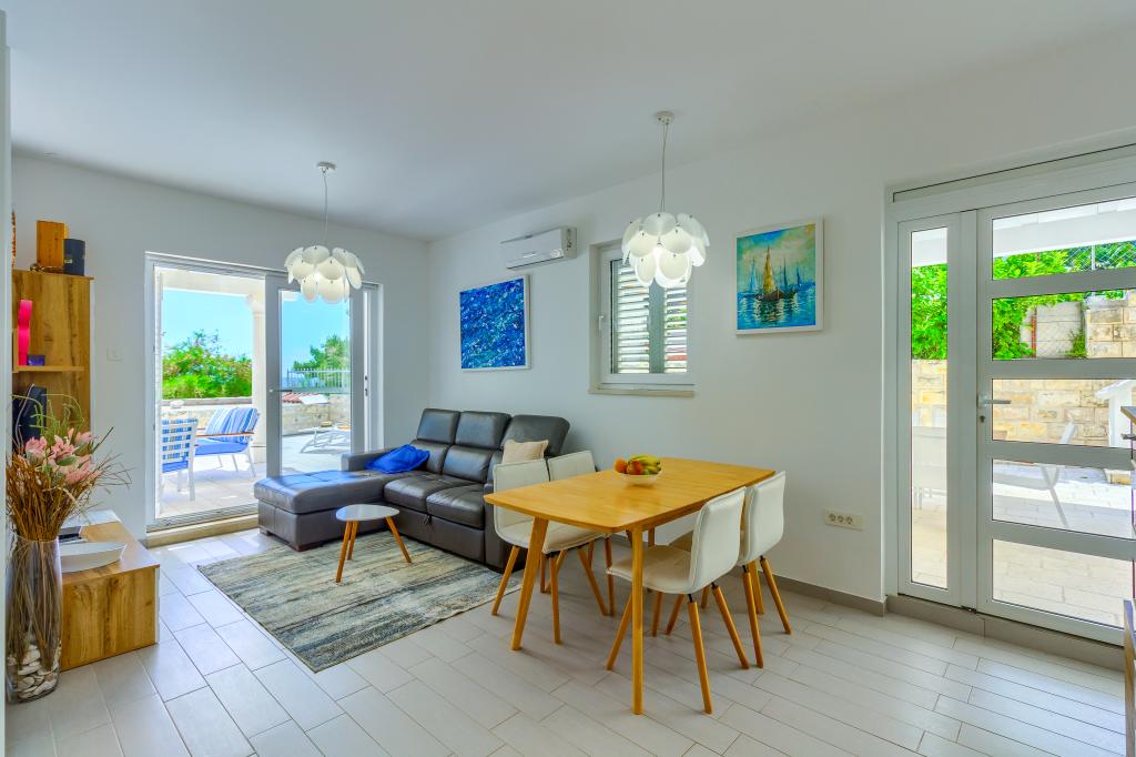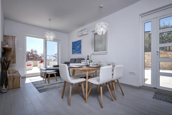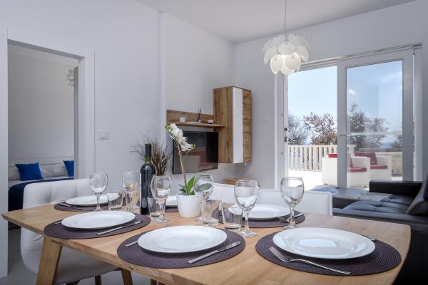 Turistička pristojba je uključena u cijenu.Dodatna oprema i uređaju uključeni u cijenu: - internet, sat TV, klima, pegla, potpuno opremljena kuhinja (perilica posuđa), perilica rublja se nalazi u kupaoni, osiguran privatan parking - posteljina se mijenja 1 x tjedno, ručnici 2 x tjedno po potrebi i češće Mogućnost izleta gliserom sa skiperom, i prijevoza do obližnjih otoka, otočića i skrivenih uvala. Cijena pristupačna.