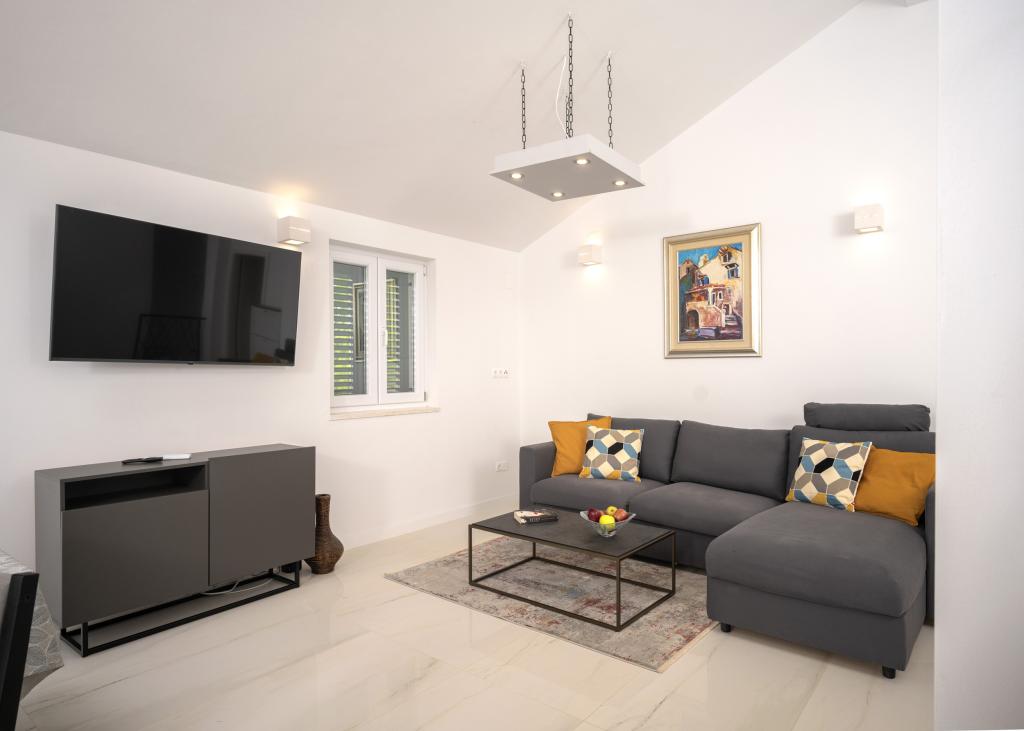 Moderno i udobno uređeni novi apartmani u Ivan Dolcu. Nalaze se u mirnom dijelu naselja s obiteljskim kućama, samo nekoliko minuta hoda do plaže. U zgradi se nalaze dva apartmana i jedan studio apartman.