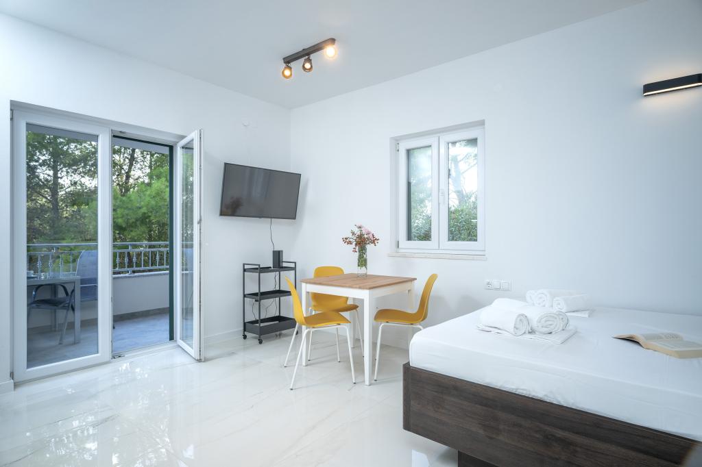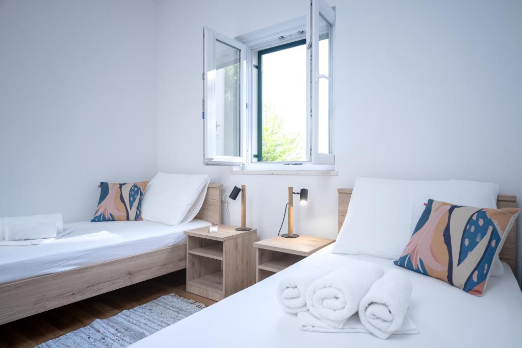 Posle više od 30 godina ponovo sam posetio hrvatsko primorje, sa suprugom i još jednim parom. Bili smo u mestu Ivan Dolac, malom simpatičnom mestašcu, idealnom za miran i opušten odmor. Uveče smo išli do Jelse, Starog grada i grada Hvar. Posebno su nam se svideli Stari grad i grad Hvar, naročito njihova arhitektura i očuvanost starih zdanja. Hteo bih da istaknem gostoprimstvo i ljubaznost naših komšija. A sad nešto o našem smeštaju, zbog koga najviše i pišem ovaj komentar. Bili smo smešteni u apartmanu "Matija" na 1. spratu, za 4 osobe od 50 kvadrata. Apartman je jednom rečju savršen. Ne znam odakle da počnem: apartman ima 3 Mitsubishi klime (po jedna u svakoj spavaćoj sobi i jedna u dnevnom boravku), udobni kreveti, velika terasa sa mobilijarom, veliko kupatilo (ukusno i kvalitetno odrađeno), a šta tek reći za kuhinju (veliki frižider sa zamrzivačem, šporet s rernom i indukcionom pločom, mikrotalasna pećnica, aparat za kafu, ketler, nekoliko vrsta čaša, šolja, tanjira, tiganja, šerpi, začini, kafa, čaj, alu folija...), ma perfekcija.U hodniku imate čak i veš mašinu, prašak za veš i omekšivač,ma neverovatno.Apartmani su otvoreni 2023. i maltene su novi.Istakao bih još da su apartmani uradjeni sa stilom i ukusom i vodilo se veoma računa o kvalitetu ugrađenih komponenti, kao i samom nameštaju. Na kraju bih posebno istakao i pohvalio našeg domaćina Stjepka (starog morskog vuka),koji je bio veoma prijatan, diskretan i gostoljubiv. Dobili smo od Stjepka domaće belo vino, kao i domaće grožđe iz njegovog vinograda. Hvala ti Stjepko na svemu. Iskrene preporuke za ovaj apartman.