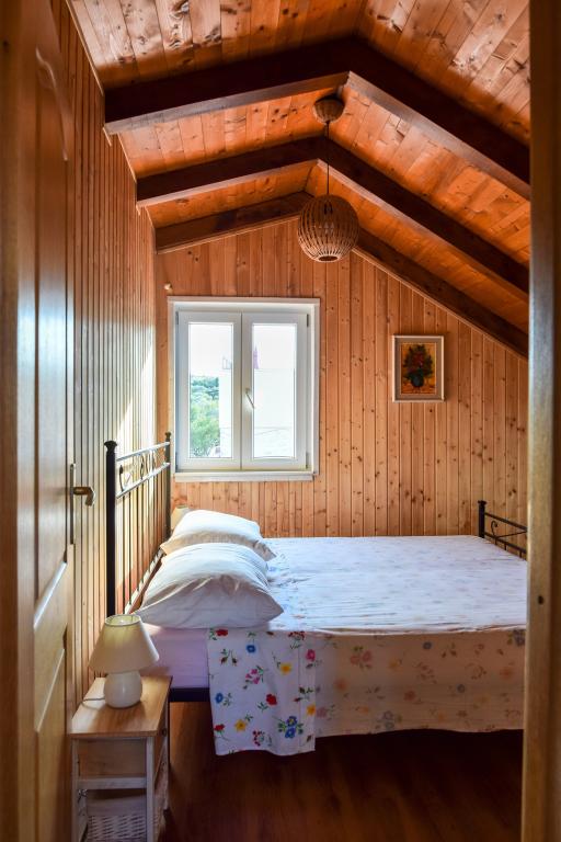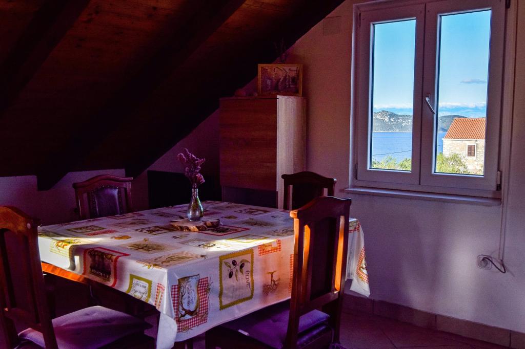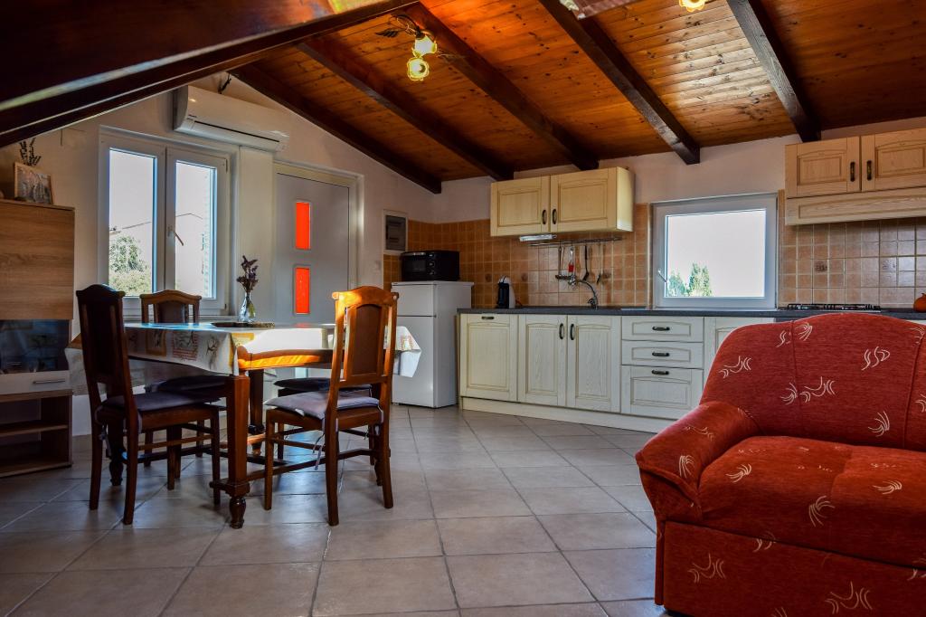 Apartman je smjesten u mirnom dijelu mjesta Mali Iž na samom vrhu brda , tako da ima lijep pogled na more i okolne otoke. Ima lijepu veliku terasu sa sjedecom garniturom i ležaljkama . Terasa je natkrivena pergolom. Ima svoje besplatno parkiraliste. Do mora ,plaze pjesice ima 10 minuta hoda , a tako i do trgovine. Apartman se sastoji od spavace sobe,kuhinje, dn. boravka , blagavaonice i kupaonice. U dnevnom boravku ima kutna garnitura koja se moze pretvoriti u dva lezaja. Ima klima , televizor, a kuhinja je opremljena sa perilicom sudja i kompletnim posudjem. U mjestu ima dva cafe bara, dvije pizzerie i više restorana. Ima trgovina. Plaze su kamene , sljuncane , betonske i pjeskovite. Ima puno borove sume, raznog zelenila i staza za pjesacenje. Na otoku je jos jedno naselje Veli Iz sa dvije trgovine, vise restorana i caffe bara.