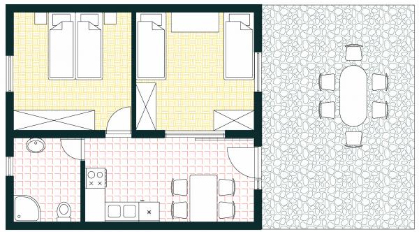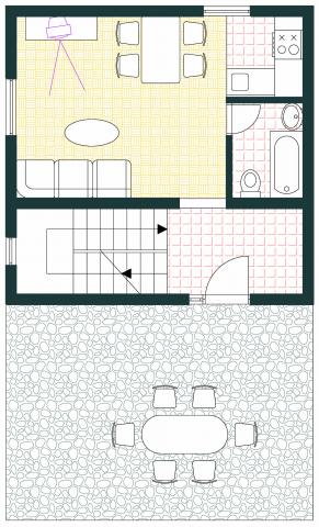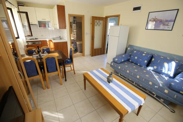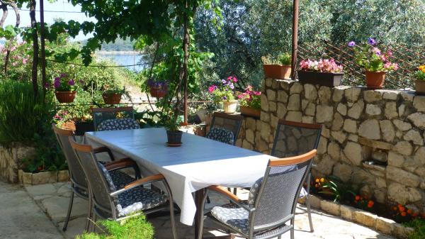 Apartman kao zasebna stambena kuća u mirnom predjelu mjesta Mali Iž, 200 metara od trajektnog pristaništa s zasebnim parkirnim mjestom. Apartman u prizemlju ima dnevni boravak s kuhinjom i kupatilom koji ujedno može poslužiti kao zasebna soba ili studio apartman, a na katu nalaze se 2 sobe i posebno kupatilo. Zasebno dvorište s roštiljem za cjelodnevni boravak. Udaljenost od plaže je 5 minuta hoda. Osiguran vez za brod i parking za trajler, , wifi internet.