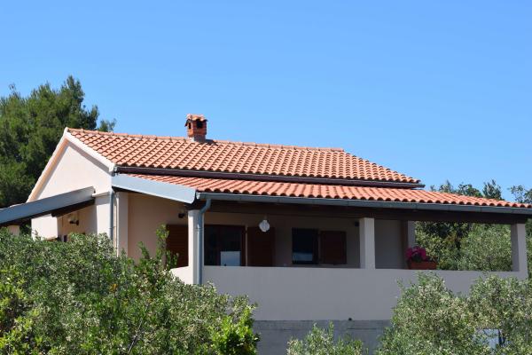 Kompletno opremljena mala kuća za odmor u mirnom predjelu Malog Iža, smještena 10 minuta hoda od trajektnog pristaništa Bršanj i 15 minuta hoda od centra mjesta i luke Komoševa. Objekt je udaljen oko 250 metara od mora i 70 metara od glavne prometnice. Do objekta vodi pješačka staza a parkiranje je osigurano uz cestu. Kuća je smještena u vrtu maslina i mediteranskog bilja, susjedni objekti su udaljeni oko 100 m,vlasnik ne boravi u kući, što vam osigurava mir i potpunu privatnost, a plaža , market, kafić.....je na udaljenosti 5 do 10 minuta hoda. Kuća je površine 69 m2 - kuhinja i dnevni boravak, spavaća soba i kupaonica. Kuhinja je potpuno opremljena svim potrebnim aparatima i suđem, spavaća soba krevetom 160X200, u dnevnoj sobi su dva ležaja 90x200, LED TV, DVD, radio i društvene igre. Iz kuhinje i dnevnog boravka izlazi se na terasu površine 35 m2, s prekrasnim pogledom na more. Terasa je natkrivena i opremljena električnim roštiljem, garniturom za sjedenje i ležaljkama.