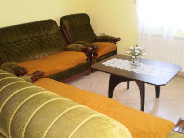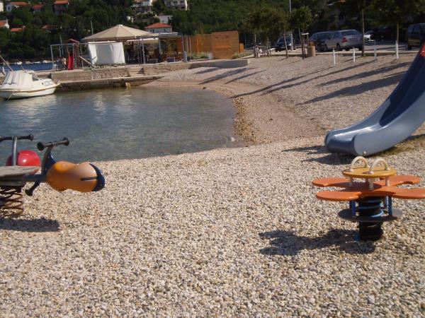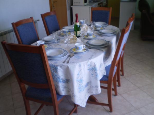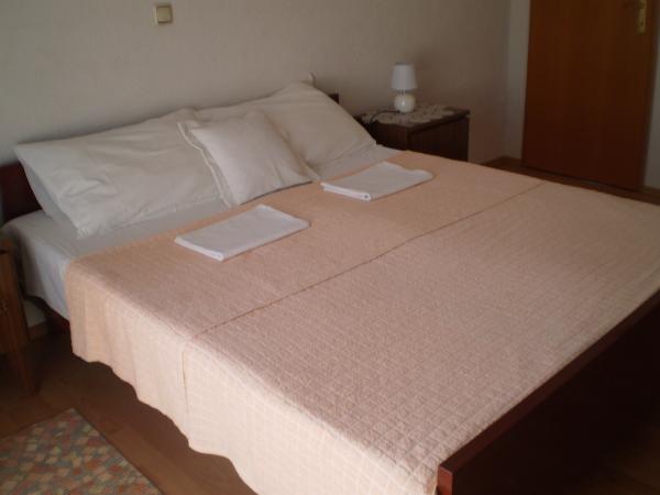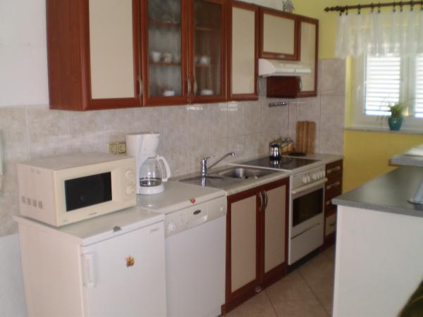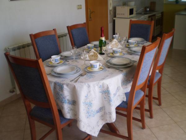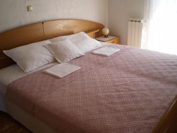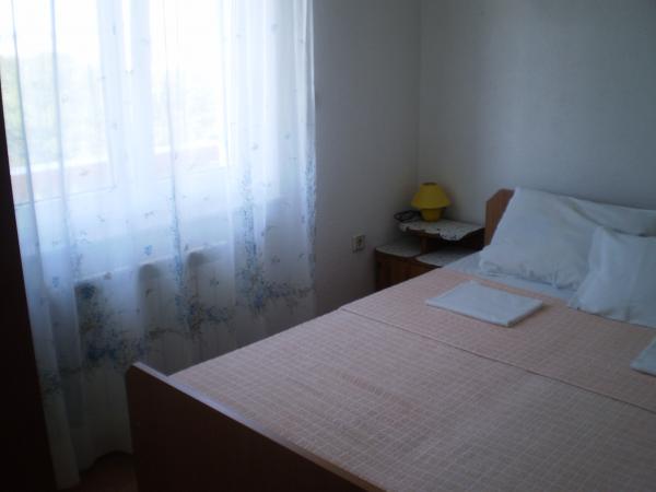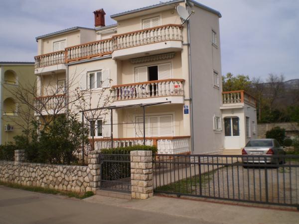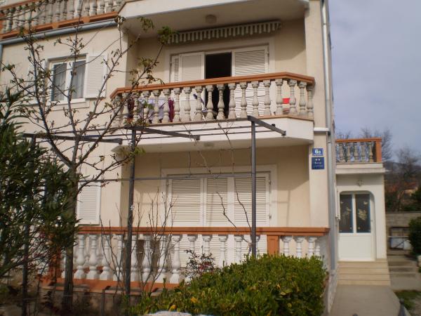 Apartman se nalazi u obiteljskoj kući na drugom katu. Površina 100 metara kvadratni, ima tri sobe s bračnim krevetom, te dva pomoćna ležaja, veliki dnevni boravak. U apartmanu ima: TV, Satelitska, Wi-Fi, klima. Ima veliku terasu s pogledom na more, veliko dvorište s parkingom. Apartman se nalazi 200 metara od mora. . .