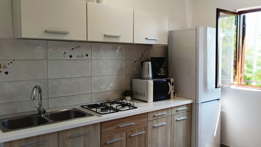 Dopustite mi da prvo pohvalim vlasnika da smo stalno tretirani s raznim delicijama i dobrote, stvarno srce od žene koja također ima dva vrlo prijateljska psa. Stan je čist, dobro opremljen i prostrana terasa je ogromna, pogotovo, jako dobra cijena. Okolo apartman i kuće je sve zelenje , tako da je automobil parkiran u hladu kao i apartman u koji dolazi ugodno svjež zrak. Do plaže je mala nizbrdica, što nije problem, ali se brzo da priviknuti. Stan je posljednji u ulici i stoga je vrlo mirno. Mi smo bili jako zadovoljni i preporučujemo apartman!