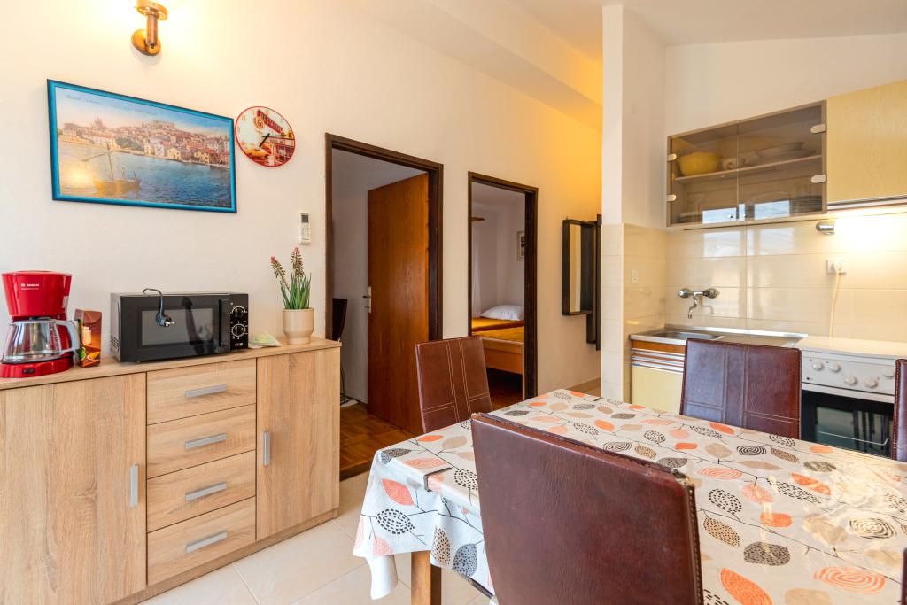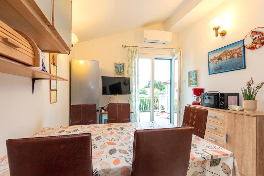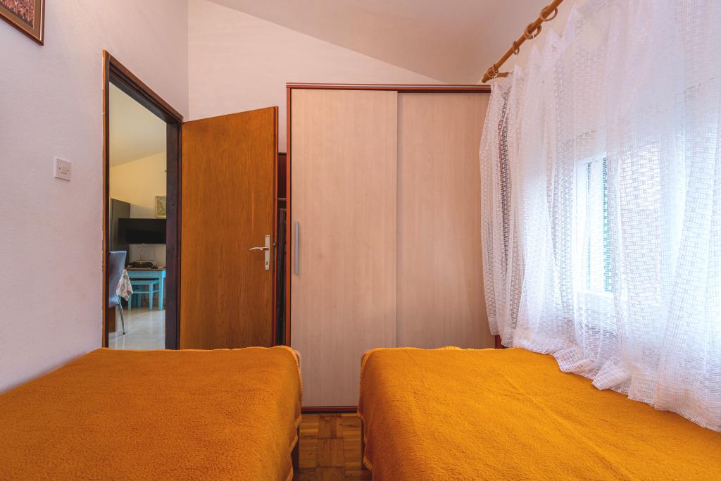 Funkcionalno namješten i opremljen apartman za odmor u mjestu Jadrija pored Šibenika. Apartman je površine 35m2 + 17m2 terasa. Sastoji se od dvije spavaće sobe, ukupno za 4 osobe, kuhinje (plinsko kuhalo, hladnjak), kupaonice i prostrane terase. U apartmanu se nalazi TV, klima, mikrovalna, aparat za kavu, besplatan WI-FI 5G mreža, te sve što je potrebno za ugodan boravak. Nalazi se na katu kuće za odmor. Na donjem katu se može koristiti vanjski tuš i roštilj. Sam apartman je u mirnom okruženju udaljen svega 100m od plaže Guština uvala, te 200m od druge plaže i poteza kafića. Trgovina i restoran se nalaze 80metara od apartmana. Besplatan parking je 150m od apartmana. Dolazak gostiju od 15:00, odlazak gostiju do 10:00h. Budući da se Jadrija nalazi između Vodica i Šibenika, lokacija je idealna za jednodnevne izlete u obližnja mjesta koja nude brojne mogućnosti za nezaboravan odmor, te posjet Nacionalnom parku Krka koji je udaljen 24km od Jadrije. Vodice su udaljene 7km, a Šibenik 13km.