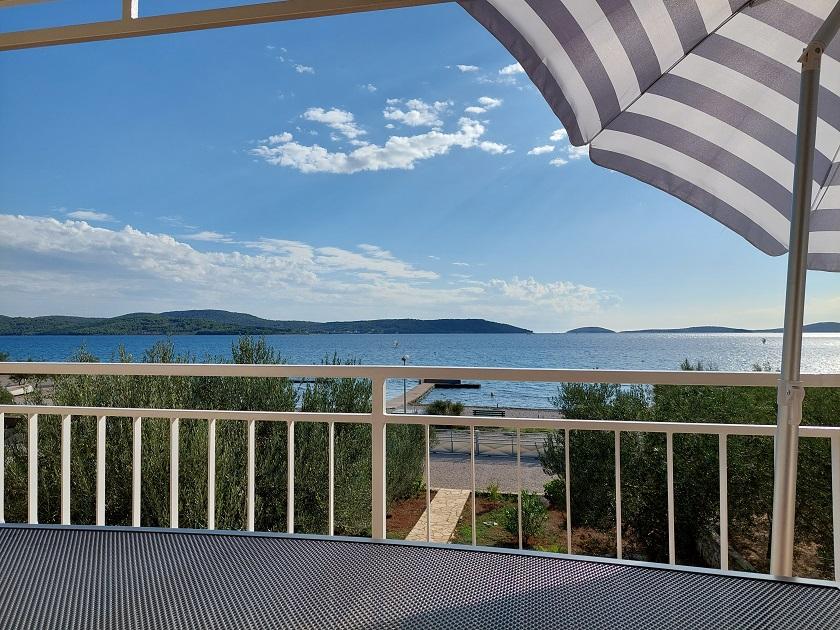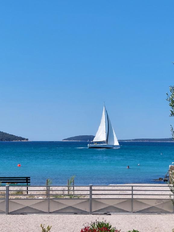 Stan sa prekrasnim pogledom na more sa terase. Vila je samo jedan stan i nudi mir i tišina, uvjete za istinski odmor. Smješten na kraju plaže, nekoliko ljudi vam mir. Apartman čist, dobro opremljena, vrlo prijateljski vlasnika. Za one koji žele istraživati, do 100 km mi Zadar, Split, Trogir i Šibenik najbliži, gdje možete ići svaku večer za kavu i vino. Za one koji žele kontakt s atmosferom u naselju i veće grupe turista citiranom oko 500 m. Odmah odmora i ovdje želimo provesti.