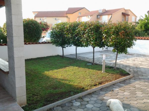 Novogradnja, kopletno i suvremeno opremljena kuća katnica. Prizemlje - kuhinja, dnevni boravak s blagavaonom i velikom natkrivenom terasmo, te toalet i jedna spavaća soba. Na katu dvije spavaće sobe, jedna s balkonom i velika kupaonica s tuš kabinom i toaletom. Dvorište je ograđeno i popločeno te ima tri parkirališna mjesta. U dvorištu je vanjski tuš i grill.