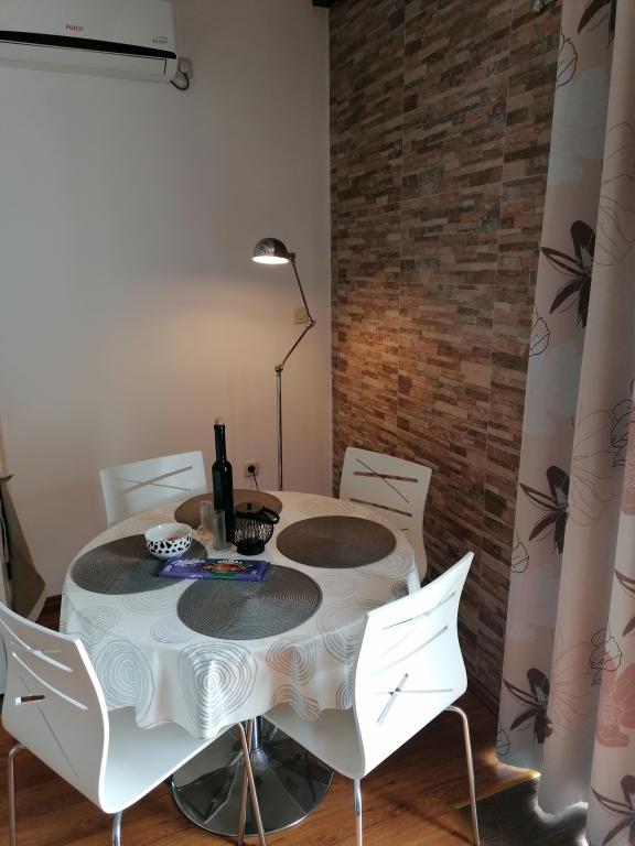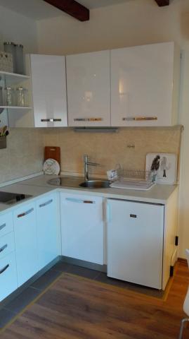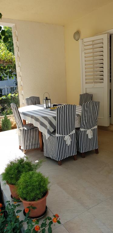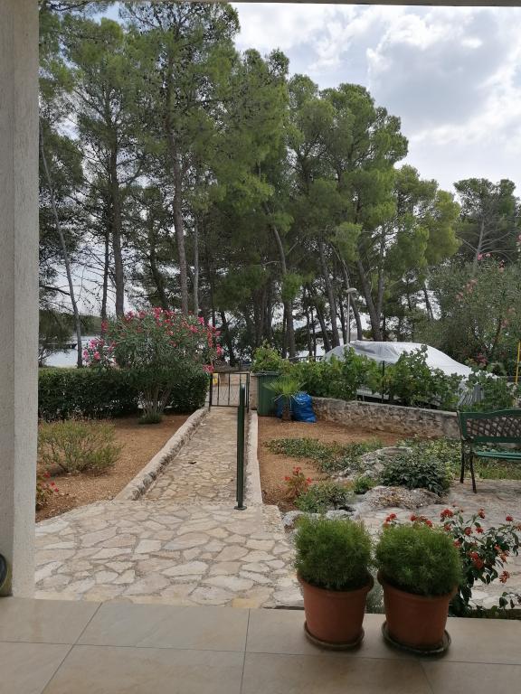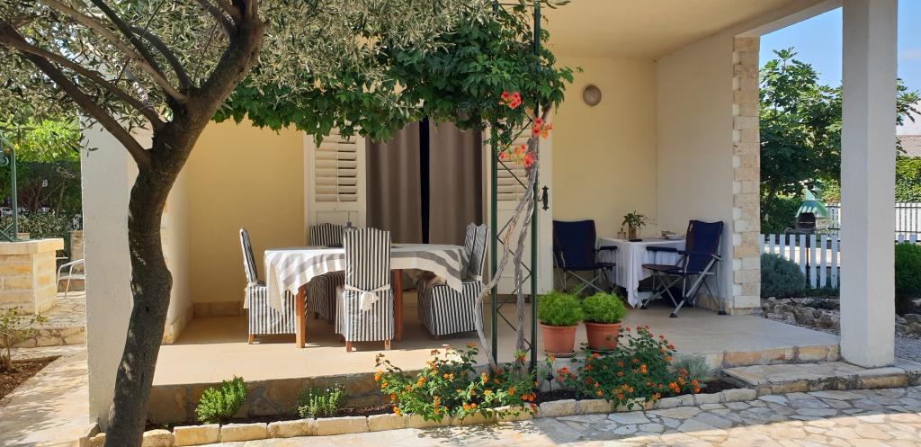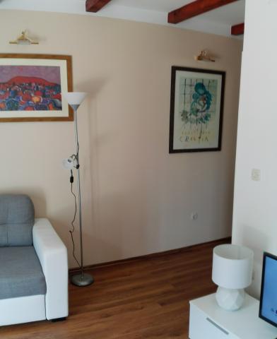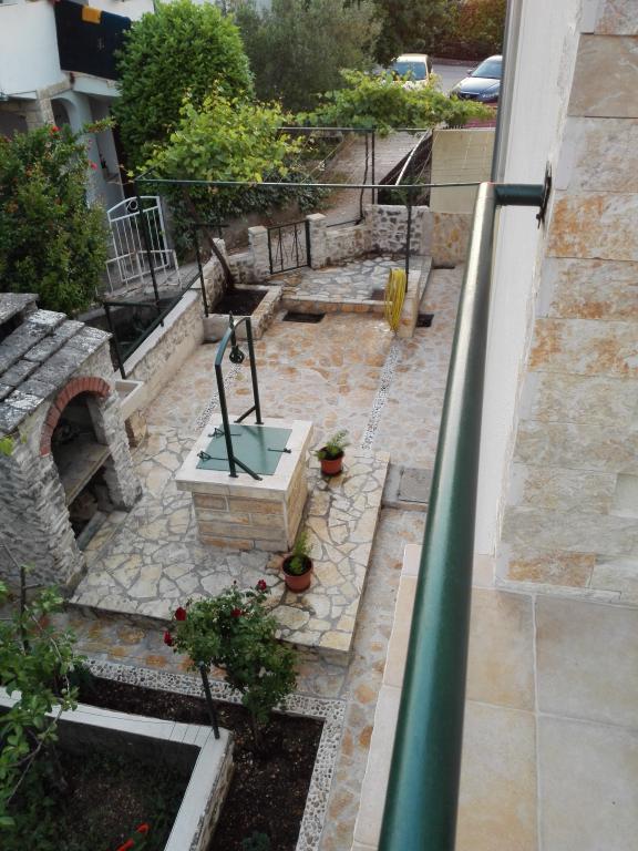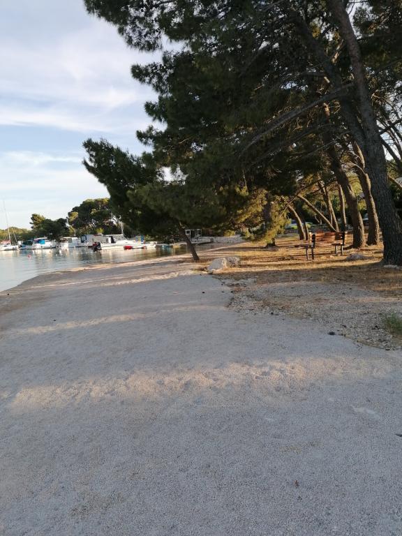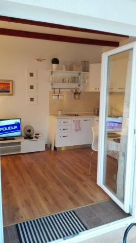 Apartman je novo uređen i nalazi se na katu kuće za odmor u prvom redu do mora. Nalazi se na šibenskom gradskom kupalištu Jadrija koje je udaljeno od Šibenika 10km, a od Vodica 5. km. Do Jadrije se može osim cestovnim putem doći i brodom ploveći kroz kanal sv. Ante 20minuta. U blizini je restoran-pizzerija i dućan. S tarace se pruža pogled na uređen vrt u kojem se nalazi kameni roštilj i tuš. Minimalno 7 noćenja u periodu od 01. 07. do 01. 09. Osiguran parking u ograđenom dvorištu ispred apartmana.