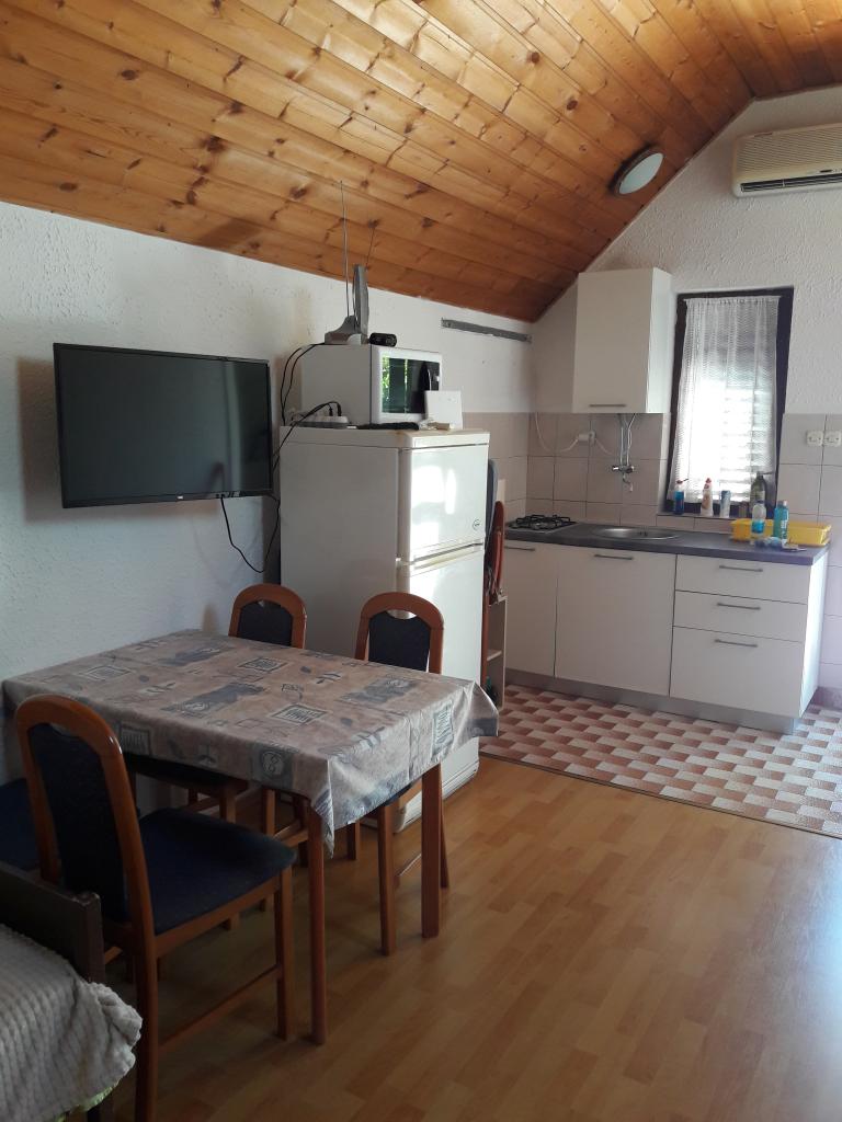 Opis studio apartmana: - površina apartmana 30 m2 + balkon s pogledom na more + terasa 10m2 - bračni krevet + jedan dodatni krevet - stol s četiri sjedalice i garderobni ormar - kuhinja (plinsko kuhalo sa 2 ploče, hladnjak) - kupatilo s tuš kadom - TV - internet - klima uređaj - posuđe za pripremanje i serviranje hrane i pića - pribor za jelo u odgovarajućim količinama - posteljina i ručnici u kupatilu uključeni - udaljenost do mora 15m. Opis apartmana A3+1 - površina apartmana 40 m2 + terasa 30m2 - soba s bračnim krevetom - soba s jednim krevetom - kuhinja (indukcijska ploća, mašina za suđe,hladnjak) s dnevnim boravkom - kupatilo s tuš kadom i perilicom rublja - TV - internet - klima uređaj - posuđe za pripremanje i serviranje hrane i pića - pribor za jelo u odgovarajućim količinama - posteljina i ručnici u kupatilu uključeni - udaljenost do mora 15m.