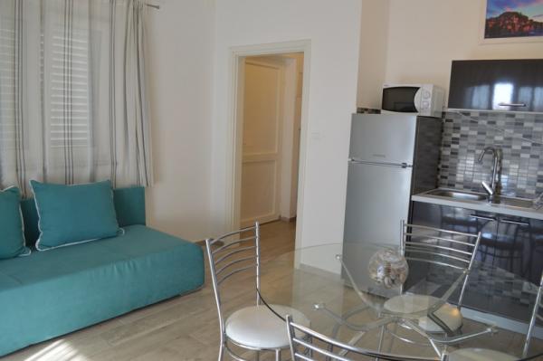 Jednosoban apartman u mirnom naselju Jadrija. Udaljeni smo 10-ak km od Šibenika i 5 km od Vodica. Idealni za miran obiteljski boravak, ali i za one koji vole aktivan odmor, s naglaskom na surfanje po čemu je Jadrija poznata. S Jadrije se do Šibenika može stići i redovnom brodskom linijom, a apartman je uz lokalnu prometnicu i lako dostupan. Samo stotinjak metara od mora i plaže.