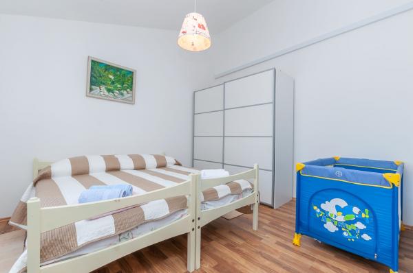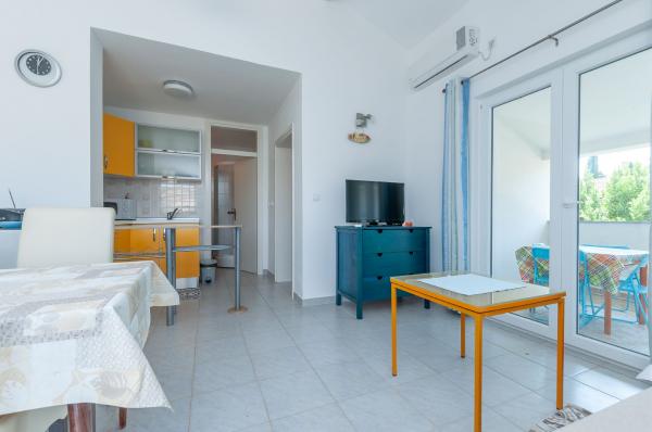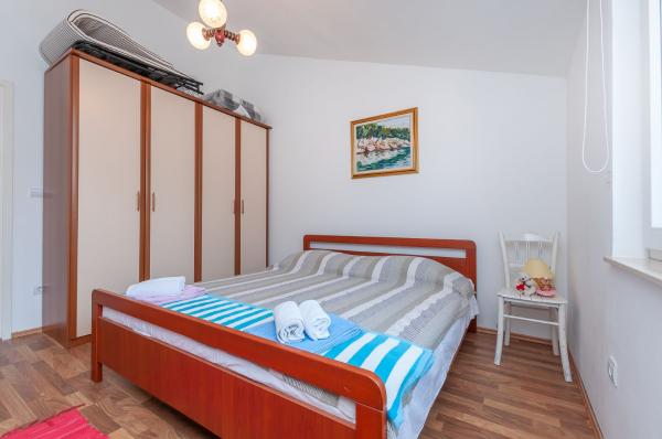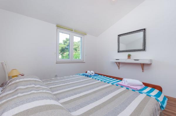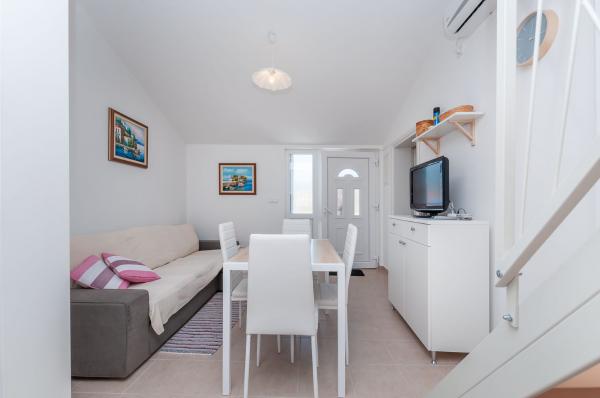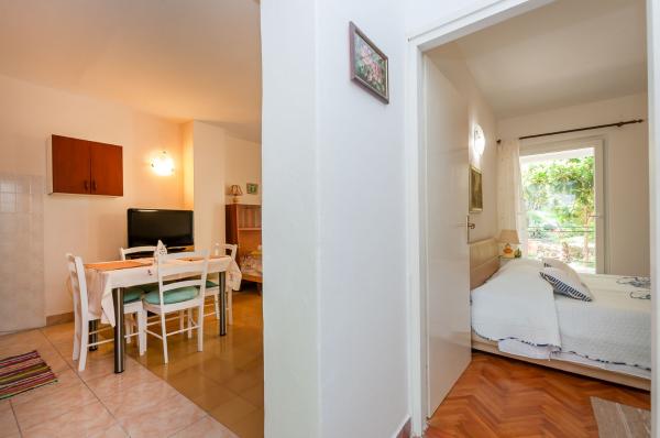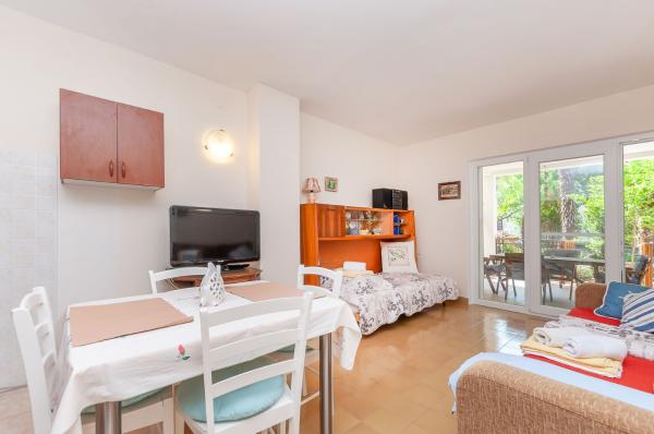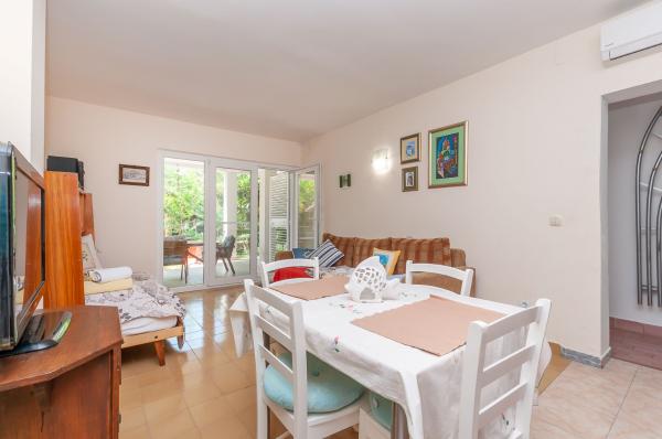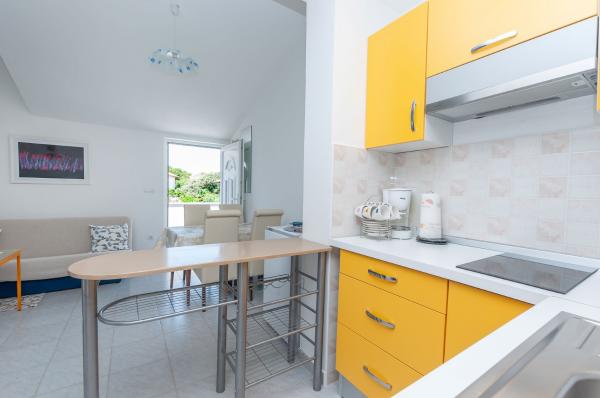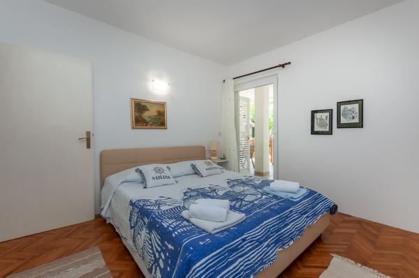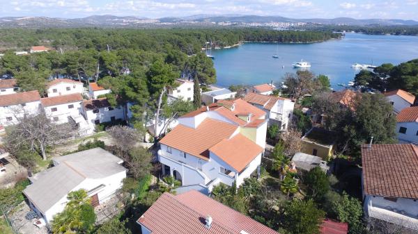 Iznajmljuju se kompletno uređeni apartmani , s pogledom na uređeni vrt, u kojem se nalazi kameni roštilj. .Kuća se nalazi u mirnom predjelu kupališta Jadrija, 2 minute hoda do plaže. Blizina trgovine. Mogucnost iznajmljivanja tri apartmana (cijele kuće). Na najam dva ili više apartmana odobrovamo popust od 10%. Minimalno 7 noćenja u periodu od 01.07. do 01.09 . U niskoj sezoni mogućnost dogovora. Prilikom dovođenja kućnih ljubimaca obvezna je predhodna najava, te se u tom slučaju završno čišćenje naplaćuje 50eur.