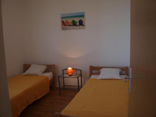Turistička pristojba nije uključena u cijenu. Šaljemo pismenu potvrdu rezervacije (voucher)U vrtu je vanjski tuš te natkriveni gril. Ispred kuće nalazi se sljunčana plaža za djecu. Apartmani se nalaze u mirnom dijelu kupališta. Udaljeni su pet minuta vožnje do Vodica. Nedaleko su smješteni restoran, pizzeria, prodavaonica, kiosk i sportski tereni.