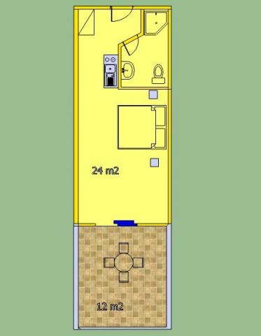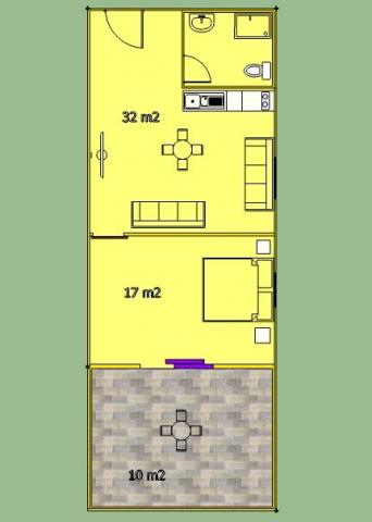 Apartmani se nalaze u prvom redu do mora, u turističkom mjestu Jadrija (između Vodica i Šibenika). Objekat ima tri odvojene stambene dva apartmana od 50m2, svaki je za 4 osobe, jedan apartman od 60 m2 za 5 osoba. te sobu sa kupaonicom za 2 osobe. Svaki apartman ima terasu sa pogledom na more.