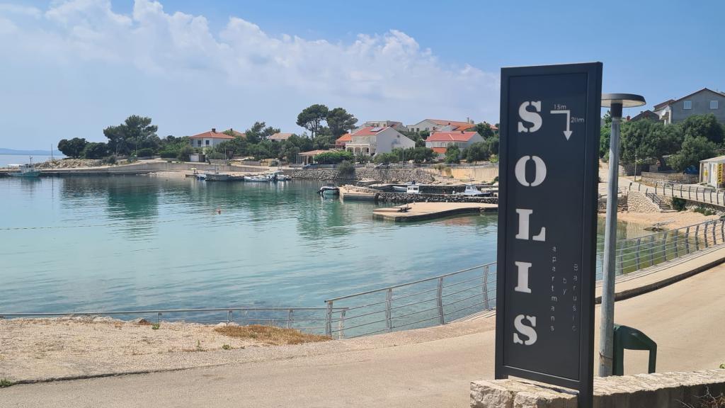 Apartmani Solis nalaze se 50 metara udaljeni od mora u mirnom i malom mjestu Jakišnica na otoku Pagu. Imamo 2 veća ( za 4+1 osobu ) i 2 manja ( za 2+1 osobu) apartmana, svi su sa pogledom na more i zalazak sunca i svi imaju balkone. Veći apartmani imaju dvije sobe. manji jednu, uz kupaonicu, kuhinju sa blagavaonom. Apartmani imaju klimu ( veći dvije), wi fi, smart TV, parking, može se koristiti grill na upit u dvorištu i konobi, kao i praonica rublja.