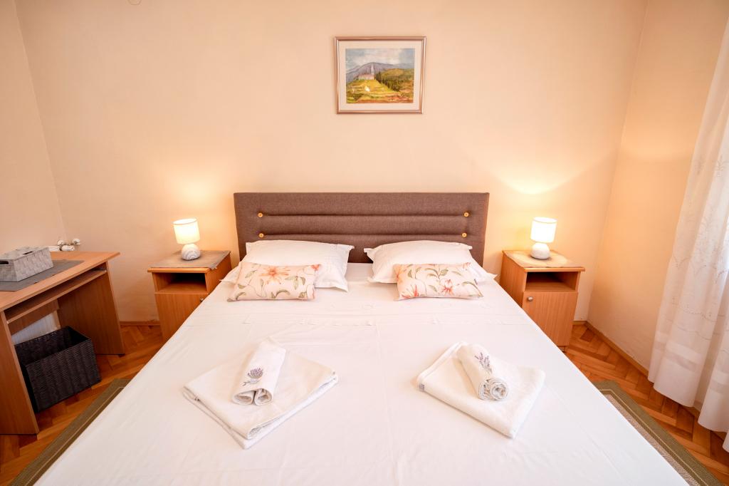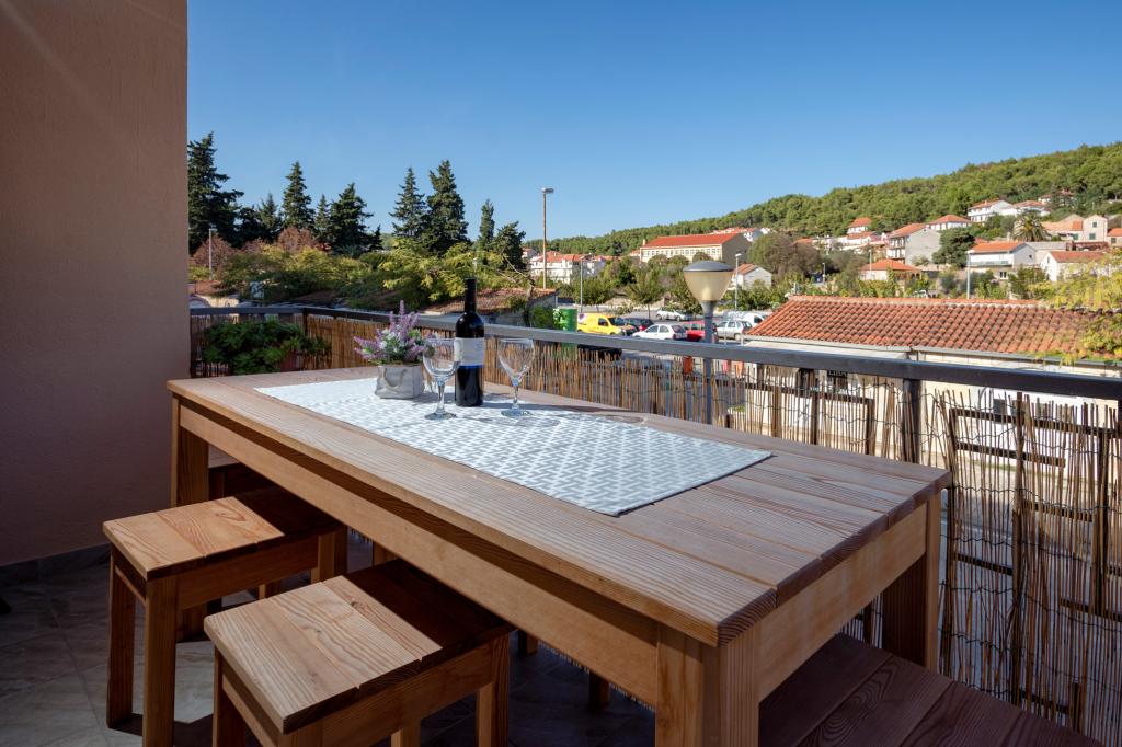 Kompletno i suvremeno opremljen apartman za 6 osoba smješten je u centru Jelse na otoku Hvaru te je idealan za obitelji s djecom. Nalazi se na drugom katu obiteljske kuće te se prostire na 85m2. U apartmanu se nalaze dvije spavaće sobe s balkonom, kupaonica, kuhinja, dnevni boravak s kaučem na razvlačenje. Uključen besplatan parking te WI FI.