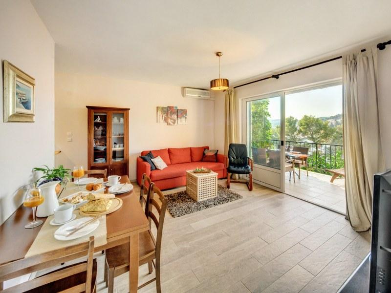 Kompletno opremljen apartman, smješten u samoj blizini mora i u mirnom predjelu mjesta Jelse. Plaža se nalazi u neposrednoj blizini apartmana. Plaža mina ima i aqua park, te restoran i tri kafe bara. Do centra ima 10 minuta laganog hoda, a u blizini apartmana se nalazi i mali dućan za osnovne potrebe.