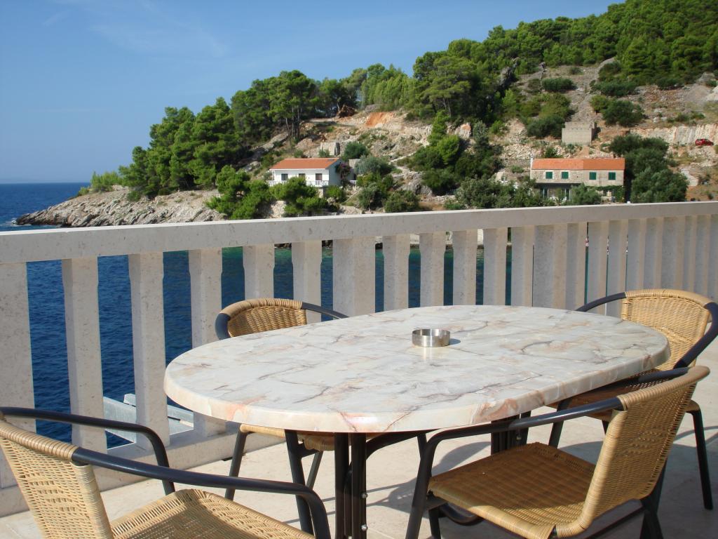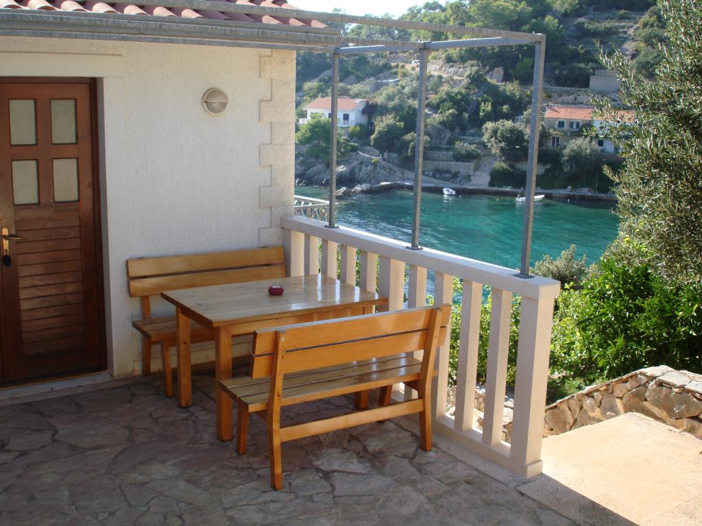 Suvremeni apartmani u selu Gdinj, uvala Torac. Kuća na samoj obali mora u mirnoj uvali svega 50m od šljunčane plaže. Odmah pokraj kuće nalazi se betonski pristan za čamce koji je također moguće koristiti za kupanje i sunčanje. Apartmani se snabdjevaju električnom energijom i toplom vodom iz solarnih izvora. Gostima je na raspolaganju i zajednički roštilj na drva i ugljen. Mala prodavaonica s osnovnim namirnicama i pićem te manji restoran nalaze se u susjednoj uvali udaljeni svega oko 200m. Tri uvale dalje, oko 2 km, nalazi se riblji restoran. Do centra sela gdje se nalazi nešto veća prodavaonica i restoran ima oko 4km. Najbliža lječnička ambulanta, apoteka i supermarket nalaze se u mjestu Jelsa, udaljeni oko 25km.