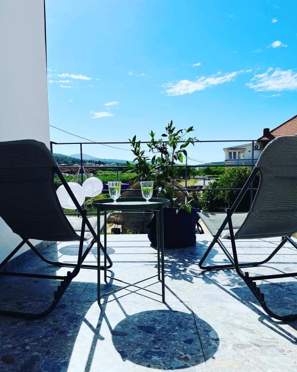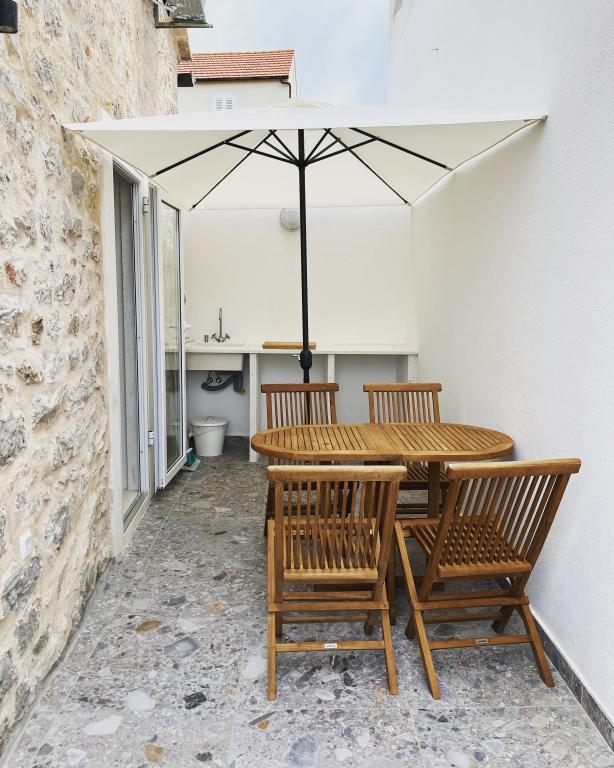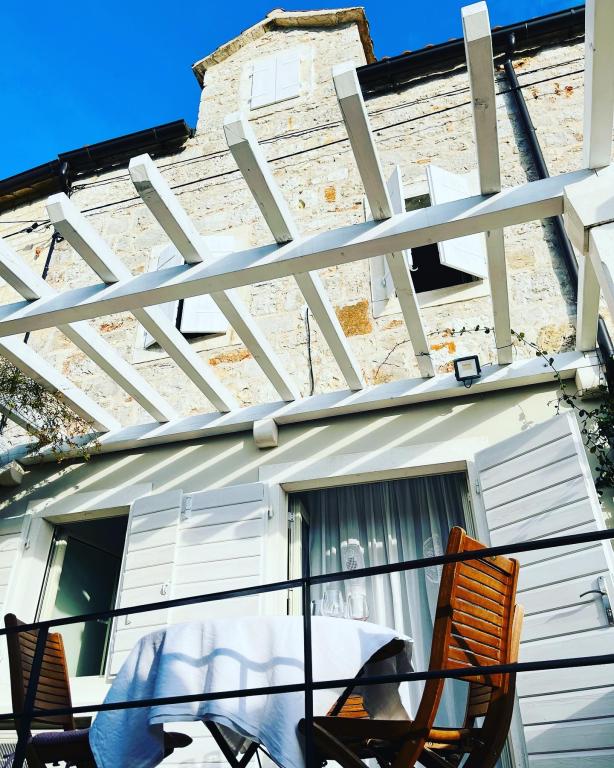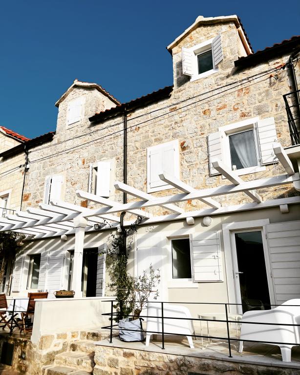 Dvije kamene kuće, potpuno novouređene u mirnom dijelu povijesne jezgre Jelse, na najsunčanijem od svih hrvatskih otoka, Hvaru. Kuća za odmor i dva aprtmana u kući pružaju mogućnosti za smještaj parova i obitelji. Kuća se sastoji od dvije spavaće sobe s kupaonama, dnevnog boravka s kuhinjom i blagovaonome te terasom. Svaki od apartmana sastoji se od spavaće sobe, dnevnog boravka s pomoćnim ležajem, kuhinje, kupaone i terase. Apartman na katu kuće veći je, obuhvaća 1.kat i potkovlje te ima dodatni toalet. Kuća je renovirana 2022. godine i opremljena svim potrebnim sadržajem. Tijekom uređenja željeli smo stvoriti ugodan i lijepi ambijent, a terase pružaju savršeno okruženje za odmor. Smještene samo nekoliko koraka od Pjace (glavni trg), kafića, restorana i obližnjih plaža. Na pješačkoj udaljenosti su: Gradska plaža, opremljena javnim tuševima i kafićem u okviru objekta; Mina, pješčana plaža sa starim borovima na terasama, koja pruža savršen spoj hlada i sunca idealna je za obitelji.