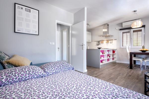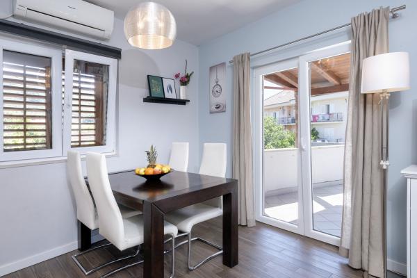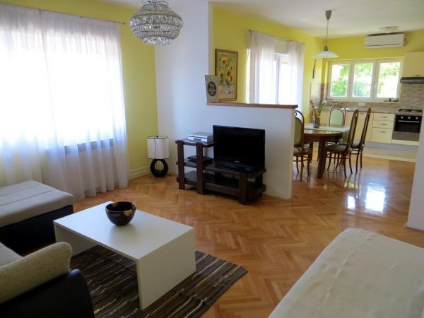 Apartman je jako lijep, prostran i čist s divnom terasom koja cijeli dan je pod prirodnim hladom Kiwija. Nalazi se u mirnoj ulici, u samom centru grada, blizu restorana, trgovina, plaža, parka za djecu. Domaćini su uvijek od pomoći kada zatreba sa smiješkom na licu. Preporučujemo!