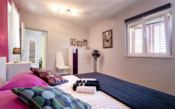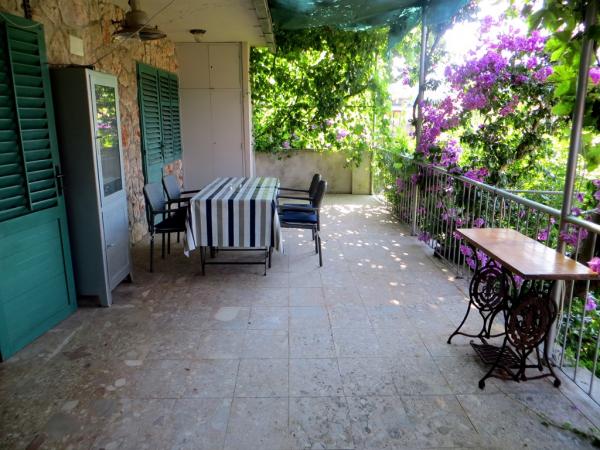 Kamena kuća sa dva opremljena apartmana, smještena u mirnijem predjelu centra Jelse, samo 150 metara od glavnog trga, mora, restorana, kafića, dućana i ostalih zanimljivih sadržaja koji će vaš boravak učiniti ljepšim. U prizemlju kuće nalazi se apartman sa dvije spavaće sobe, kuhinja, kupatilo, dnevni boravak sa dva pomoćna ležaja, hodnik te velika terasa i vrt. Na prvom katu kuće nalazi se renovirani apartman sa dvokrevetnom spavaćom sobom, dnevni boravak sa sofom na razvlačenje, kuhinja, kupatilo, balkon i velika terasa. ps. slike nove kuhinje uskoro! Apartmani imaju Wi-Fi, klimu, satelitsku tv, mašinu za suđe i rublje te parking ispred kuće. Posteljina, ručnici i završno čišćenje uključeno u cijenu. Na samo 10 minuta od južne strane otoka i 20 minuta od centra grada Hvara, Jelsa, kao jedno od najpopularnijih ljetovališta sa bogatim kulturnim večerima i mnoštvom raznih sadržaja, bila bi idealna za Vas i vašu obitelj!