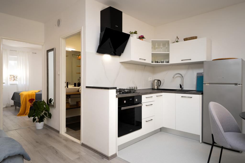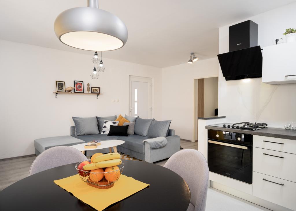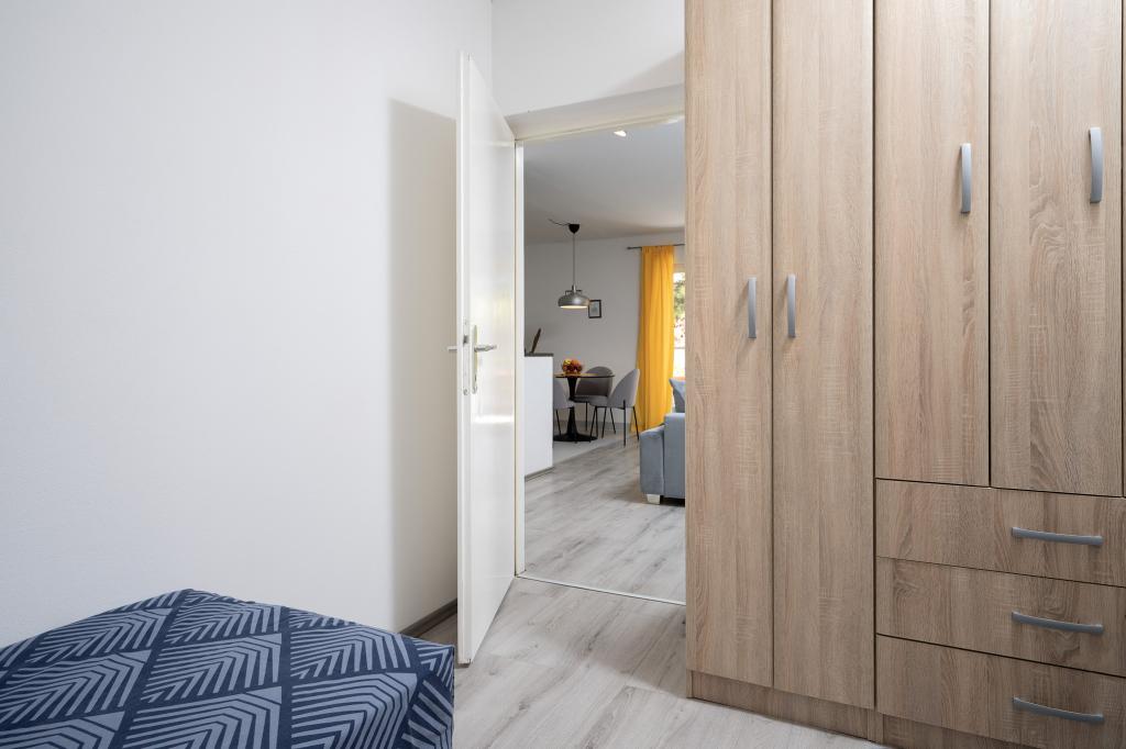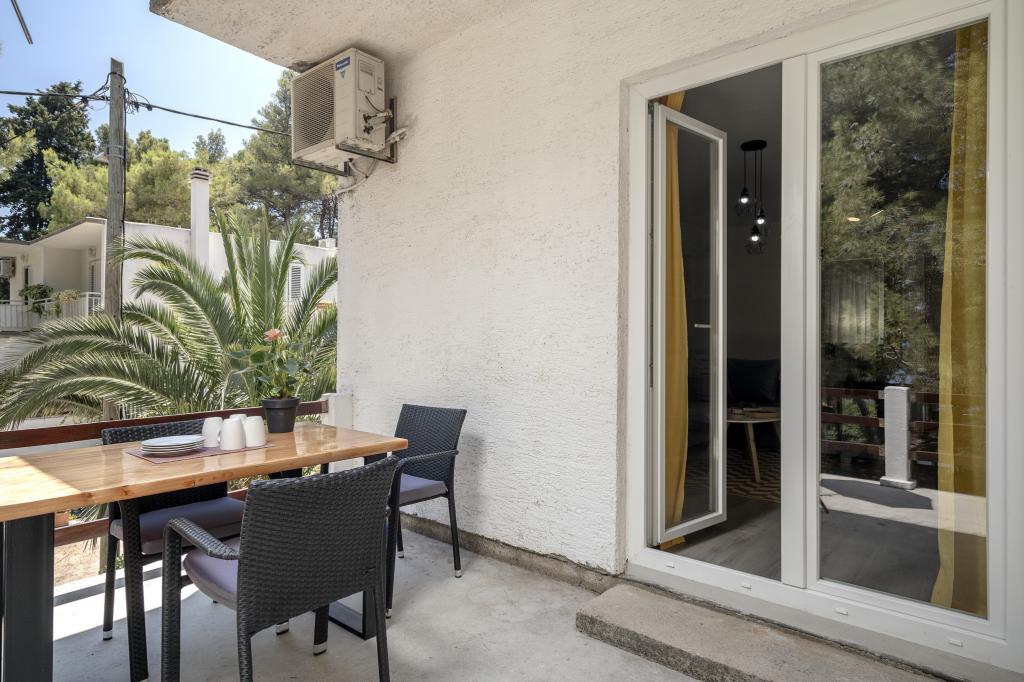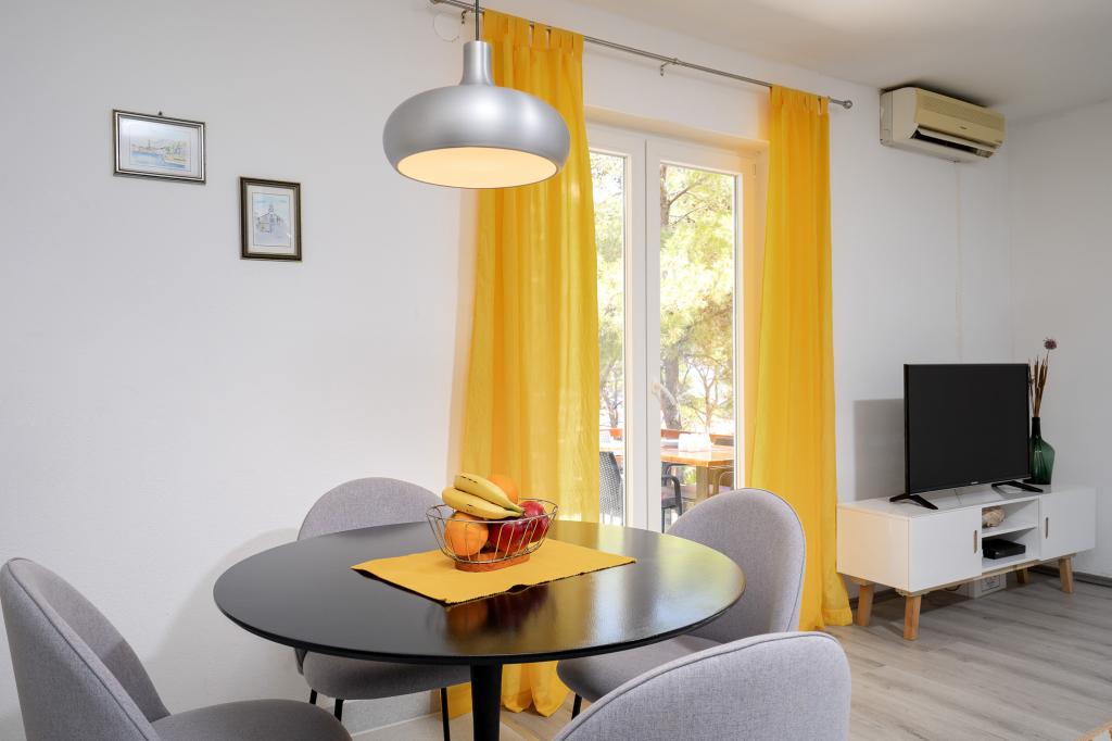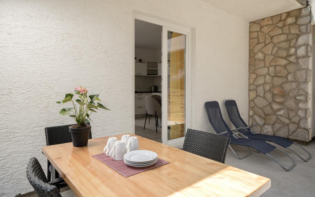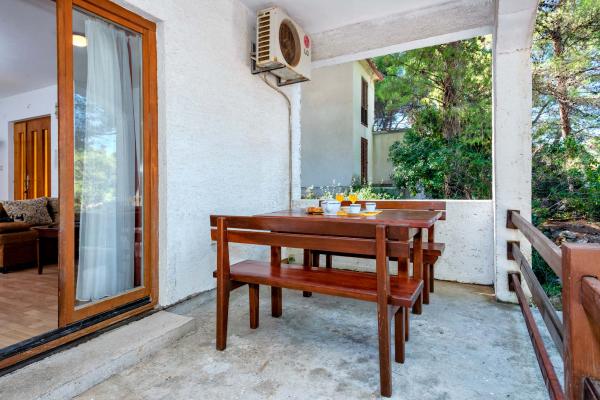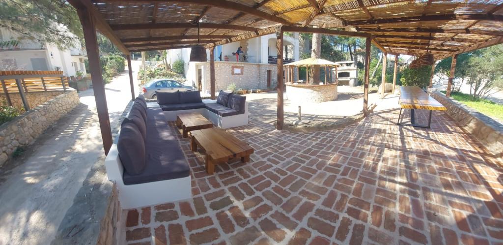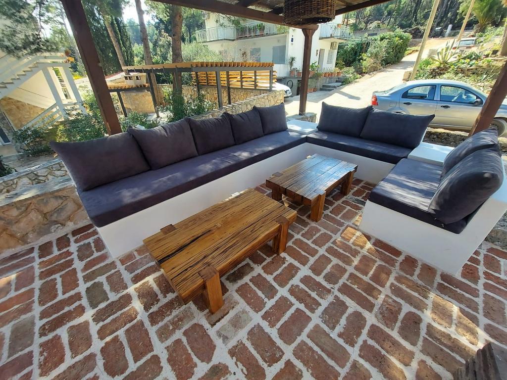 Naši apartmani su smješteni u predgrađu Jelse, nedaleko od mora i okruženi borovom šumom čine ih savršenim bijegom od glasnih i užurbanih gradova. Ispred apartmana je veliko dvorište opremljeno sa drvenim stolovima i klupama koji su prekriveni drvenom nadstrešnicom te na kojem se nalazi prekrasan veliki kameni komin koji naši gosti mogu koristiti po želji. Tu se uistunu možete u potpunosti opustiti i uživati u dubokom hladu slušajući pijev ptica i cvrčaka dok u pozadini cujete lagani žubor mora. Plaža je udaljena samo 40 metara od apartmana tako da ujutro kad se probudite i možete popiti svoju jutarnju kavu te potom u roku od minute skoćiti u more skoro zatvorenih očiju...:)