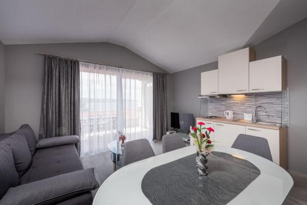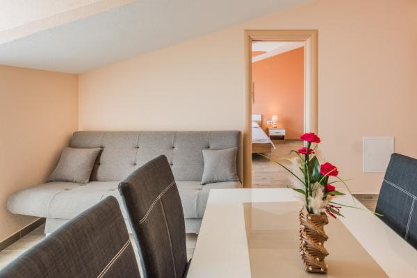Preporučujemo ovaj smještaj, ovdje smo grupa od 12 ljudi, vlasnici su sjajni, uvijek uslužni i časti vas svojim specijalitetima, sobe su čiste i dobro opremljene, blizu plaže i većih gradova poput Splita i Omiša. Svakako ćemo se jednog dana vratiti ovdje i preporučujemo ovaj smještaj svim srcem.