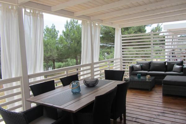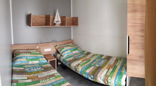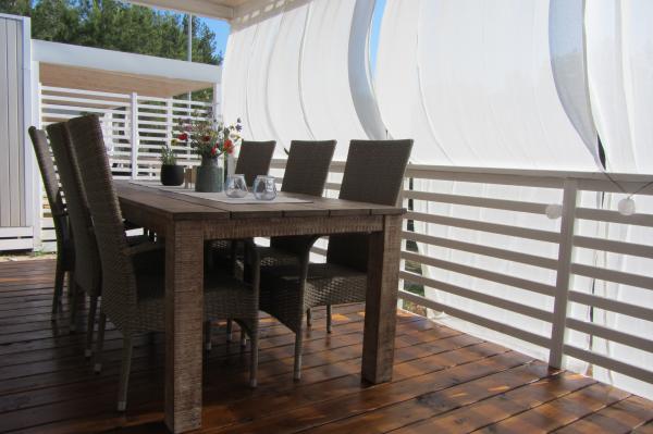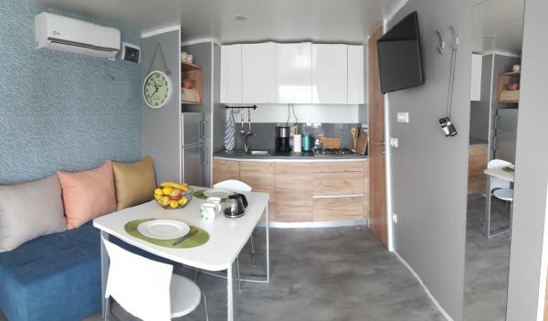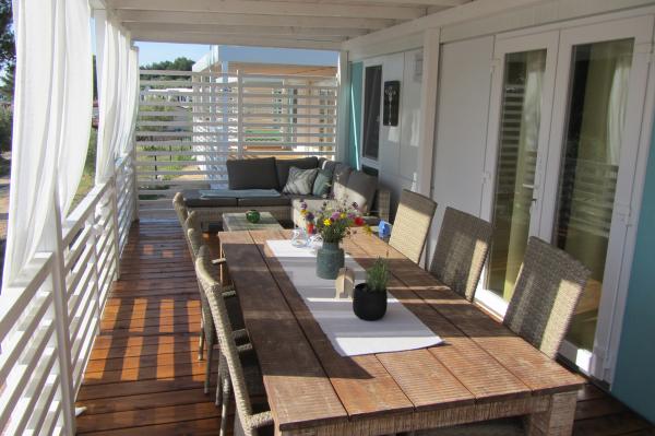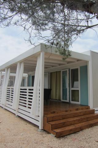 Luksuzno opremljene nove mobilne kućice smještene u jednom od najljepših kampova na Jadranskoj obali. Kamp je smješten na otoku Murteru, u uvali Jezera Lovišća. Mobilna kućica veličine 30m2 sadržava 2 spavaće sobe (uključujući posteljinu), 2 kupaonice sa tušem i fenom (uključujući ručnike), dnevni boravak sa TV-om te potpuno opremljenu kuhinju (hladnjak sa dubokim zamrzavanjem, kuhalo za vodu, aparat za kavu, posuđe, ...). Vani se nalazi prostrana 30m2 velika terasa sa blagovaonskim stolom za 6 osoba i Lounge garniturom za odmor. Objekt je klimatiziran, ima besplatni internet, satelitsku antenu, roštilj... Unutar kampa nalazi se restoran, pekara, kafić, dječje igralište i animacija za djecu, razne sportske aktivnosti (teniski tereni, golf tereni, stolni tenis, škola jedrenja...)... Plaža je betonska ili šljunčana, prilagođena djeci, opremljena tuševima i ima aqua park.