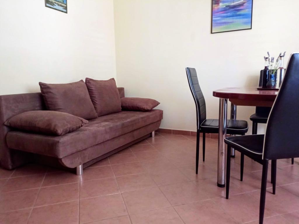 Kompletno opremljeni apartmani u mirnom predjelu smješteni otprilike 5-10 min hoda do centra mjesta i do mjesne plaže. Apartmani su smješteni u prizemlju privatne kuće dok vlasnici žive na 1. katu. Apartmani su izuzetno pogodni za smještaj obitelji s malom djecom jer objekt posjeduje veliko dvorište i mini dječje sadržaje.