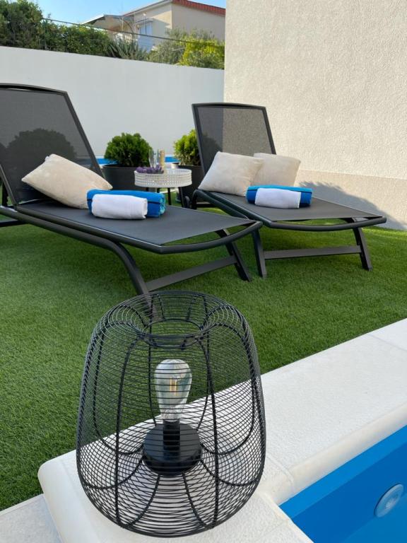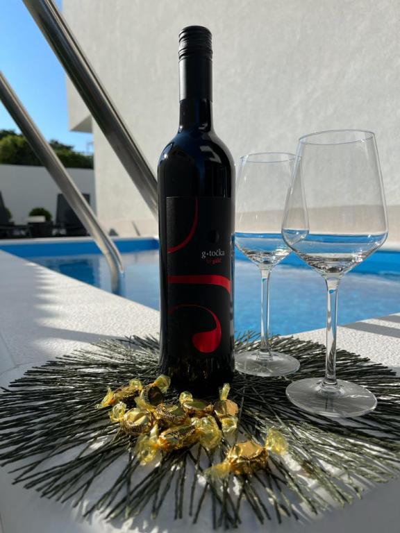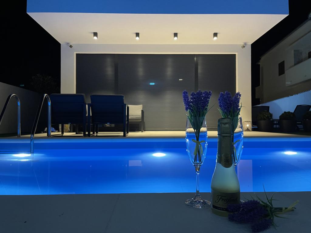 Jezera luxury apartments nalaze se u mjestu Jezera na otoku Murteru. Luksuzni apartmani AP1 I AP2 protežu se na dvije etaže, opremljeni su modernim namještajem. Svaka soba u ovom smještaju sadrži klima-uređaj, vlastitu kupaonicu i balkon. Gosti se mogu opustiti na prostranoj terasi s vlastitim bazenom i vrtom. Luksuzni apartman AP3 ima 38 kvadrata sa izlazom na terasu i balkon od 15 kvadrata. Apartman je opremljen modernim namještajem. Udaljenost do prve plaže Uvala Lovišća je 650 m, do centra 900 m. Hipermarket Tomy nalazi se u neposrednoj blizini na svega 170 m udaljenosti. Privatno parkiralište u sklopu objekta dostupno je bez naknade.
