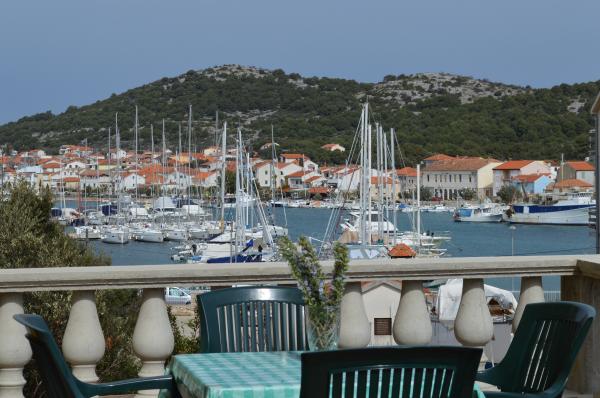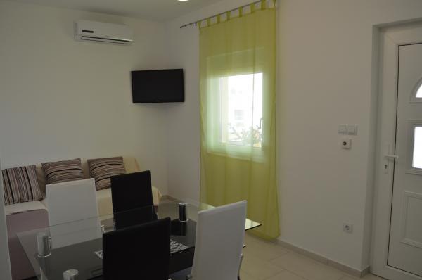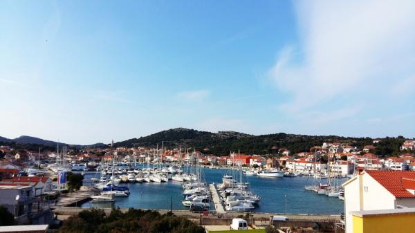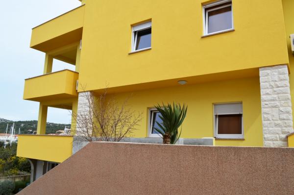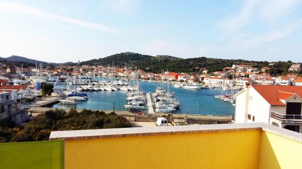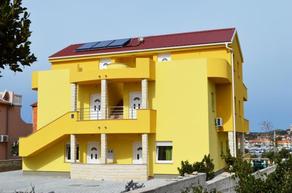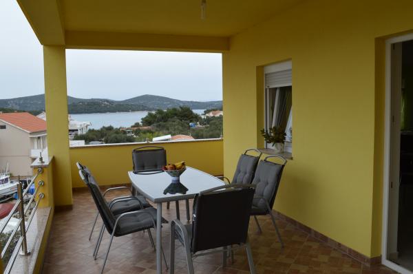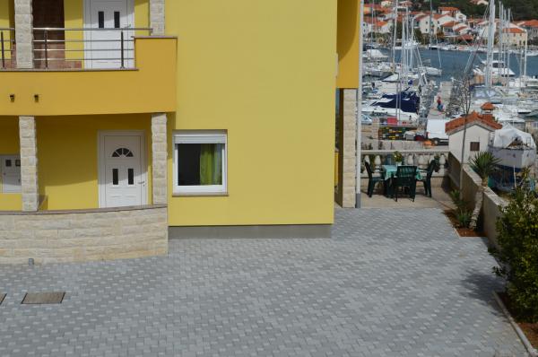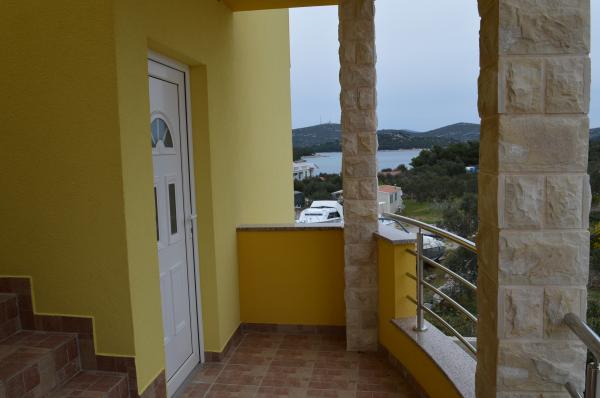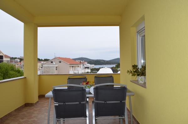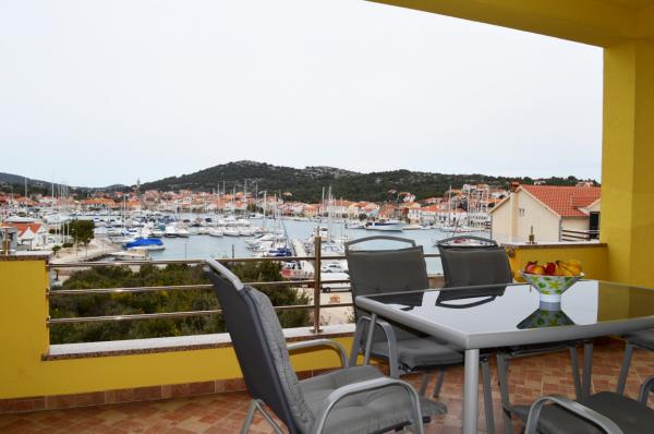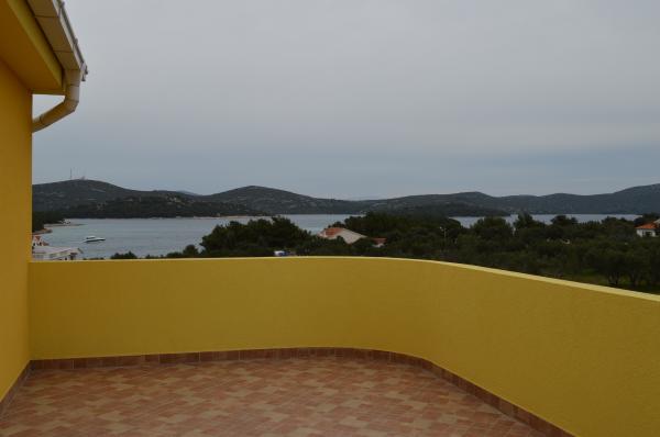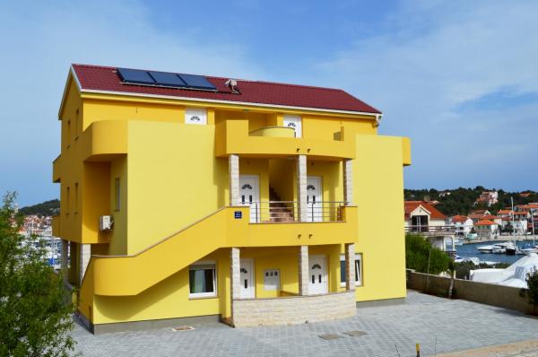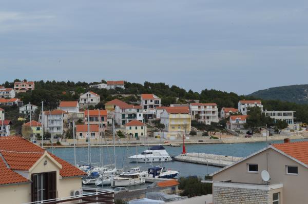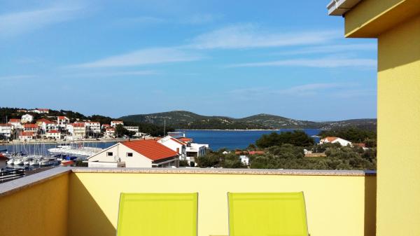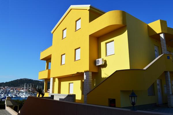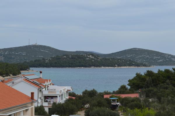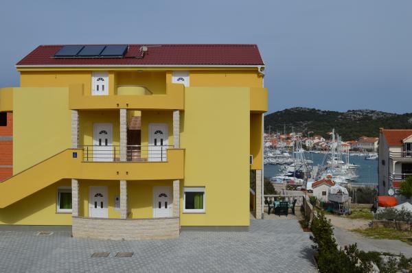 Apartmani 1, 2, 3, 4 imaju jednu spavaću sobu, dnevni boravak sa dodatnim ležajem za još dvije osobe, kuhinju, kupaonicu i terasu. Pogled sa terasa pruža se s jedne strane na prekrasnu jezersku marinu, a sa druge strane na more okruženo otočićima, te jezerskom plažom. Apartmani 5 i 6 imaju dvije spavaće sobe, dnevni boravak sa dva pomoćna ležaja, kuhinju, kupaonicu i terasu18m2. Pogled sa terasa pruža se s jedne strane preko marine na cijelo mjesto, te s druge strane na more daleko prema Vodicama. Svi apartmani su opremljeni novim namještajem, klimatizirani, imaju LCD TV, SAT i neograničeni besplatni internet (wi-fi). Gostima je na raspolaganju parking, korištenje grilla. Do plaže potrebno je 2 min hoda, do centra mjesta, trgovina, benzinske crpke potrebno je do 5 minuta hoda.