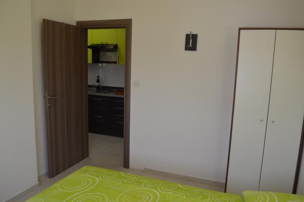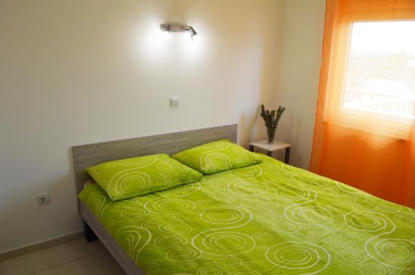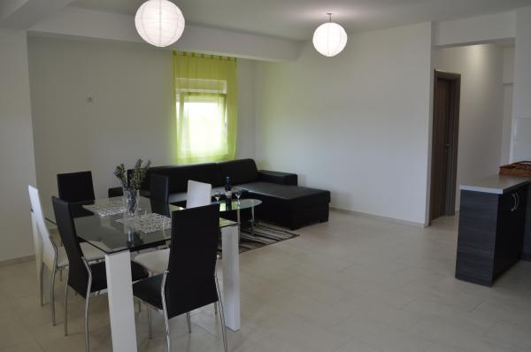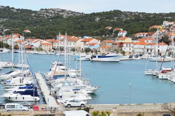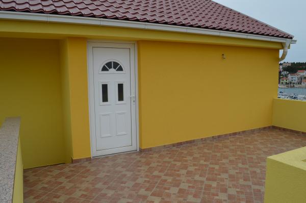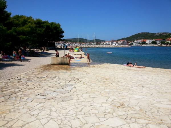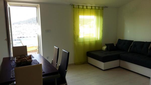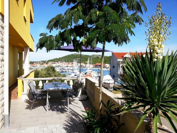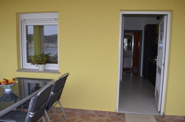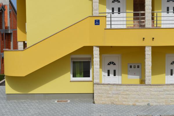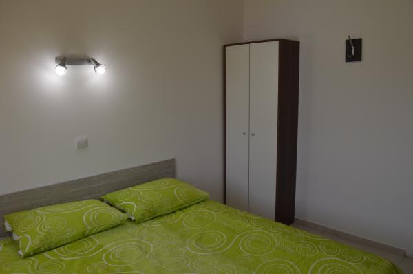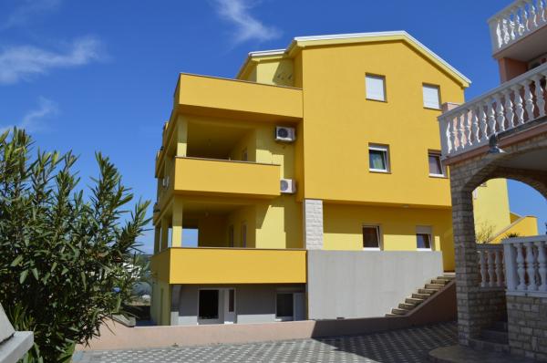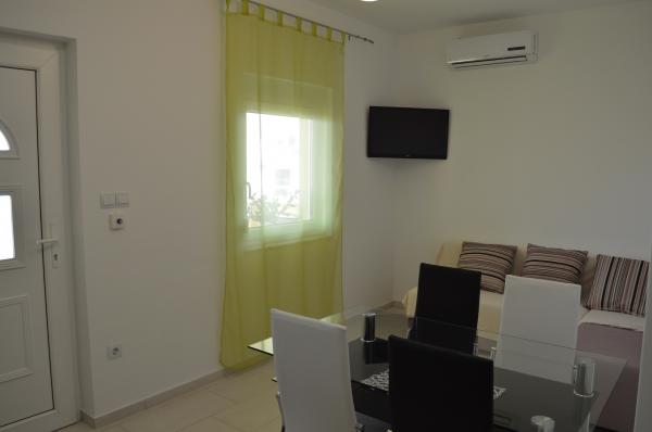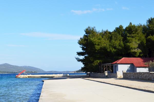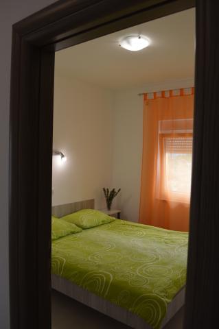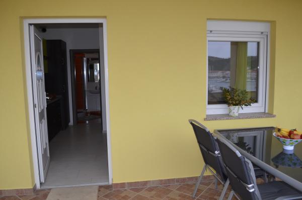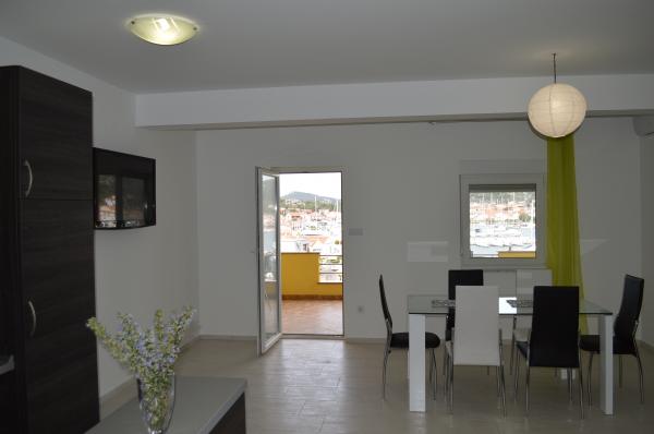 Apartmani 1, 2, 3, 4 imaju jednu spavaću sobu, dnevni boravak sa dodatnim ležajem za još dvije osobe, kuhinju, kupaonicu i terasu. Pogled sa terasa pruža se s jedne strane na prekrasnu jezersku marinu, a sa druge strane na more okruženo otočićima, te jezerskom plažom. Apartmani 5 i 6 imaju dvije spavaće sobe, dnevni boravak sa dva pomoćna ležaja, kuhinju, kupaonicu i terasu18m2. Pogled sa terasa pruža se s jedne strane preko marine na cijelo mjesto, te s druge strane na more daleko prema Vodicama. Svi apartmani su opremljeni novim namještajem, klimatizirani, imaju LCD TV, SAT i neograničeni besplatni internet (wi-fi). Gostima je na raspolaganju parking, korištenje grilla. Do plaže potrebno je 2 min hoda, do centra mjesta, trgovina, benzinske crpke potrebno je do 5 minuta hoda.