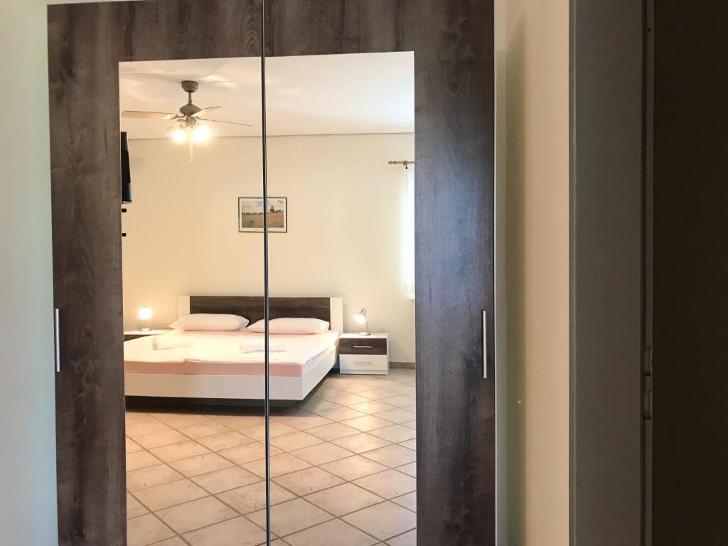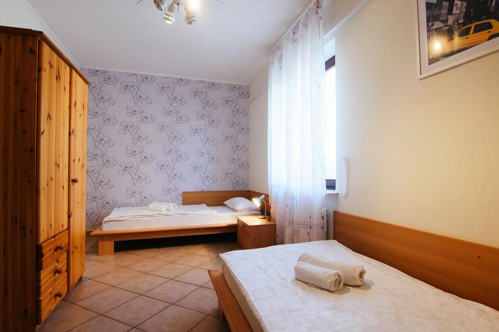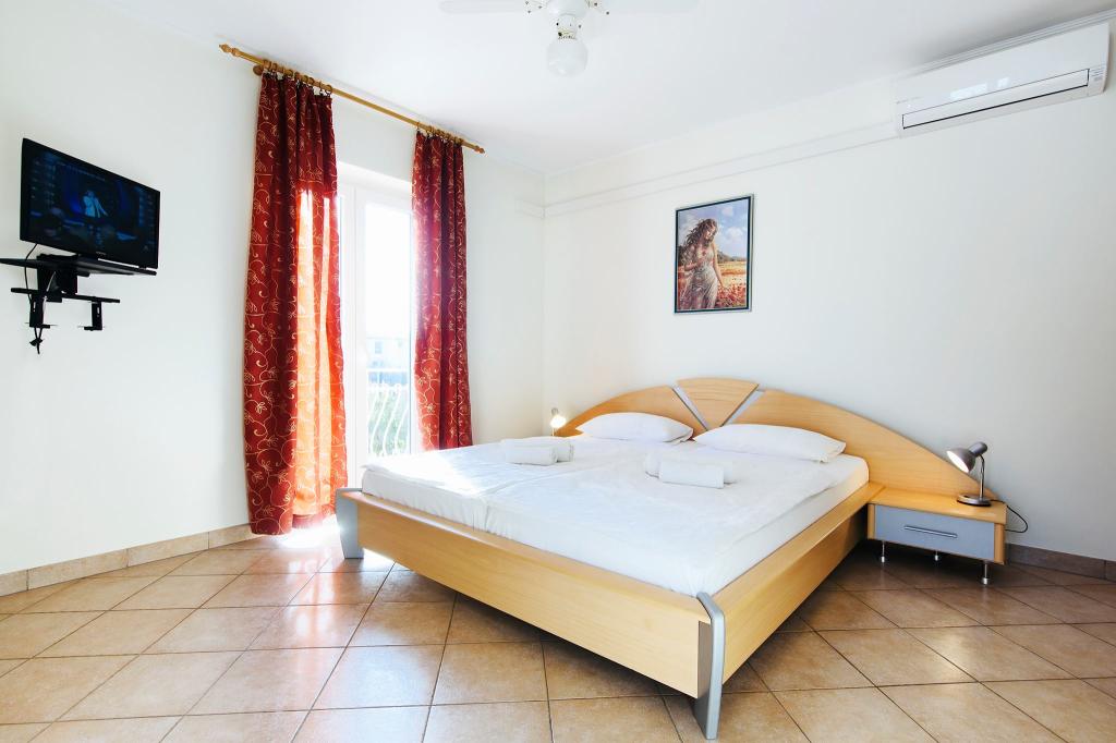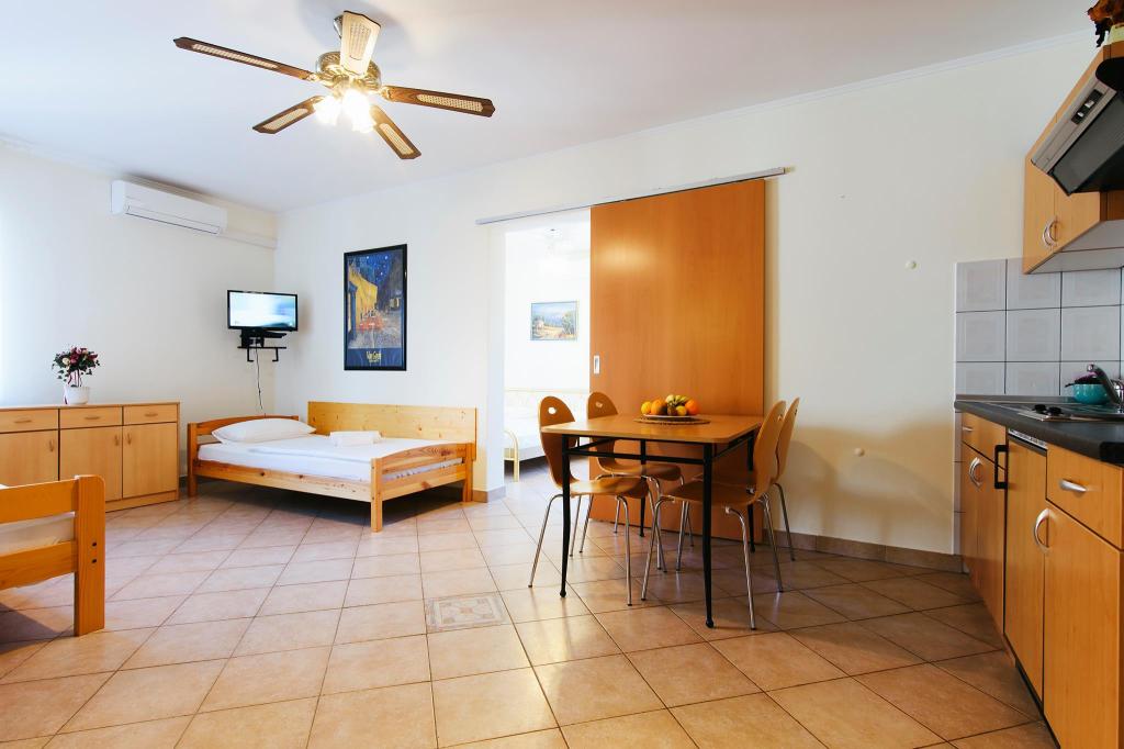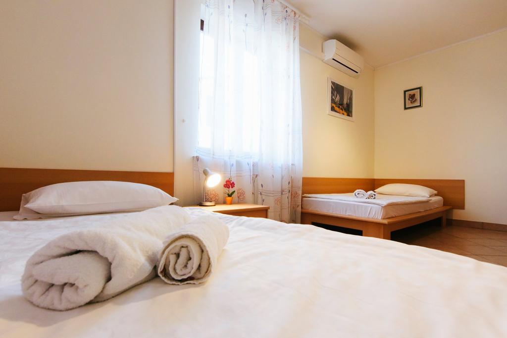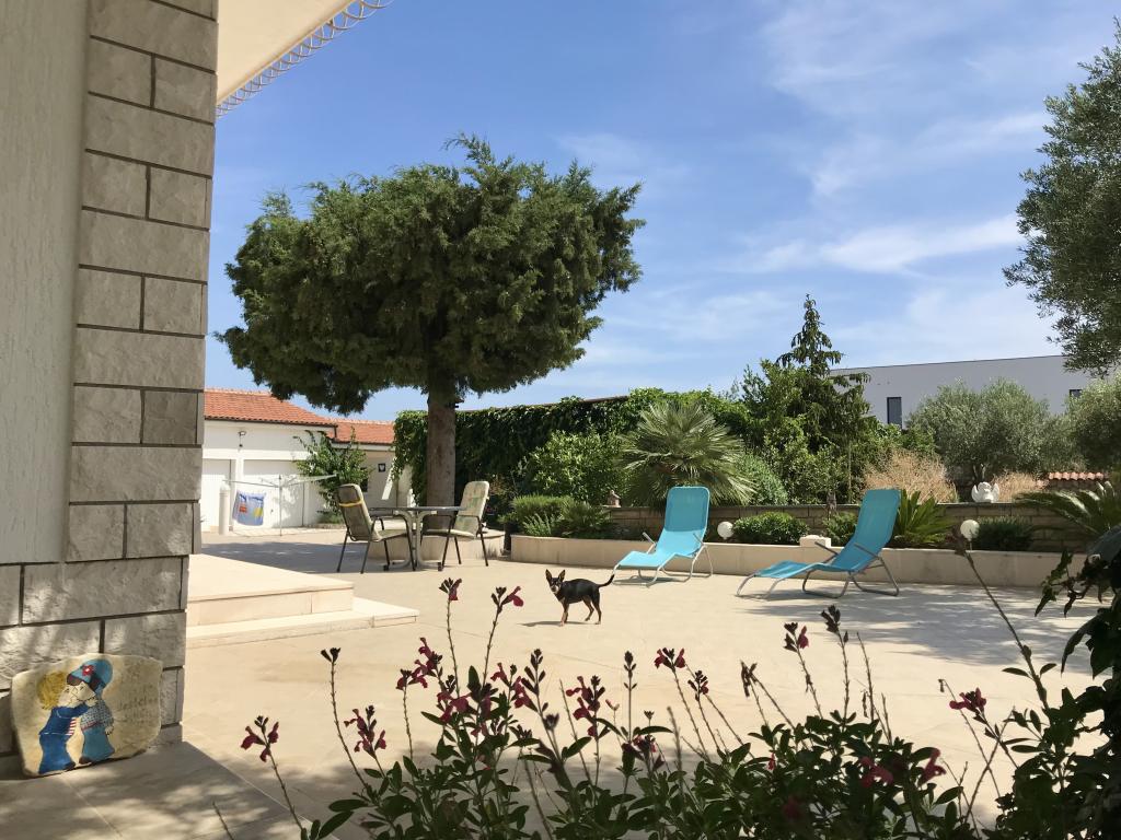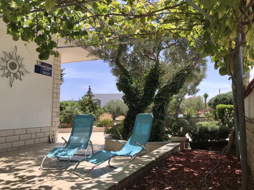 Suvremeno opremljeni apartmani u mirnom susjedstvu sa velikom okućnicom i uređenim dvorištem. Plaža, centar, riva i restorani, kafići udaljeni 5 minuta pješke.