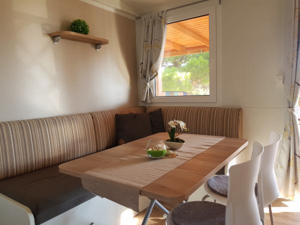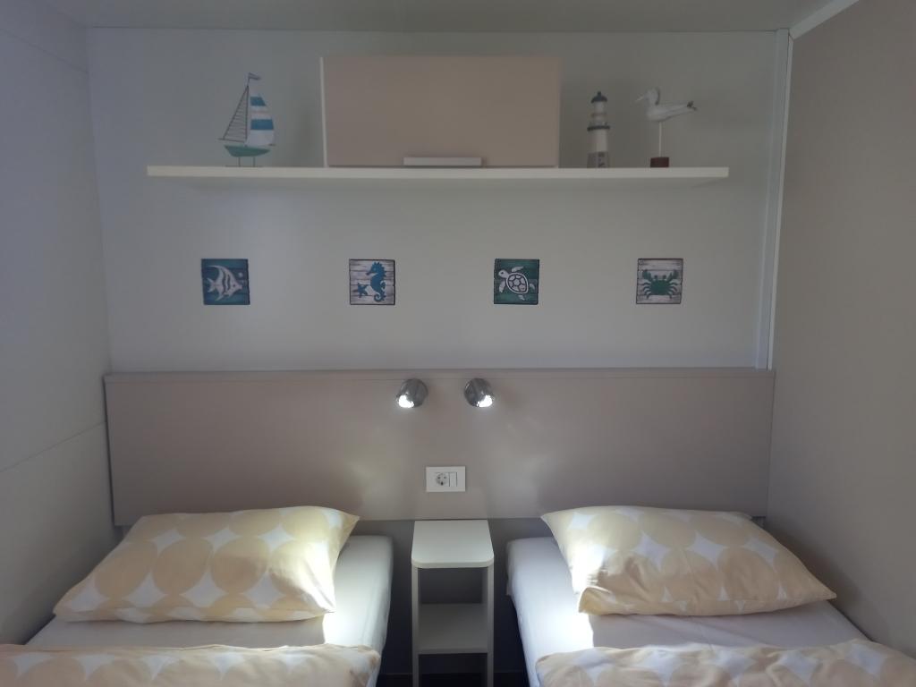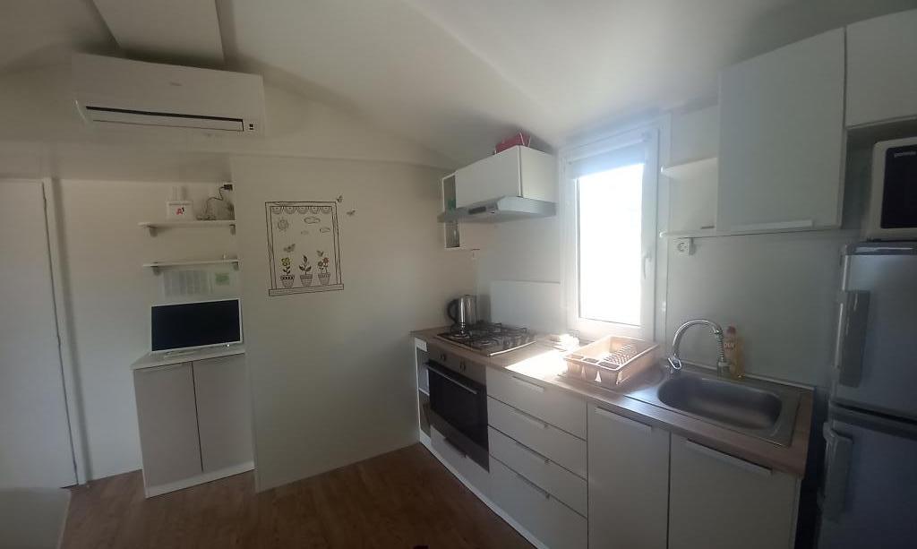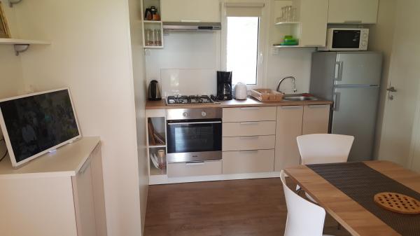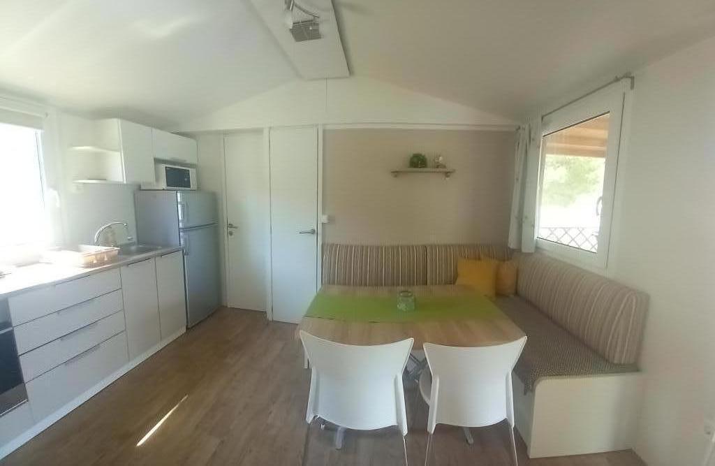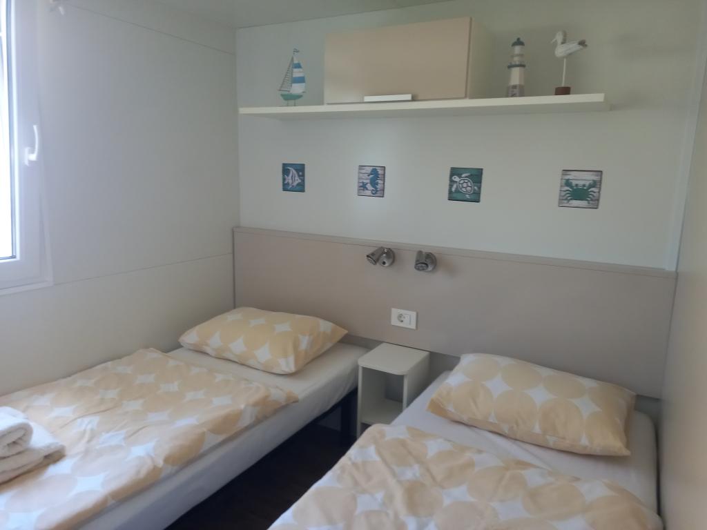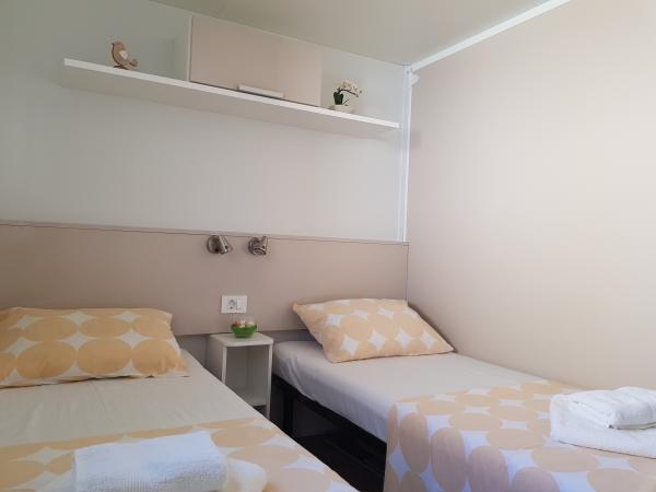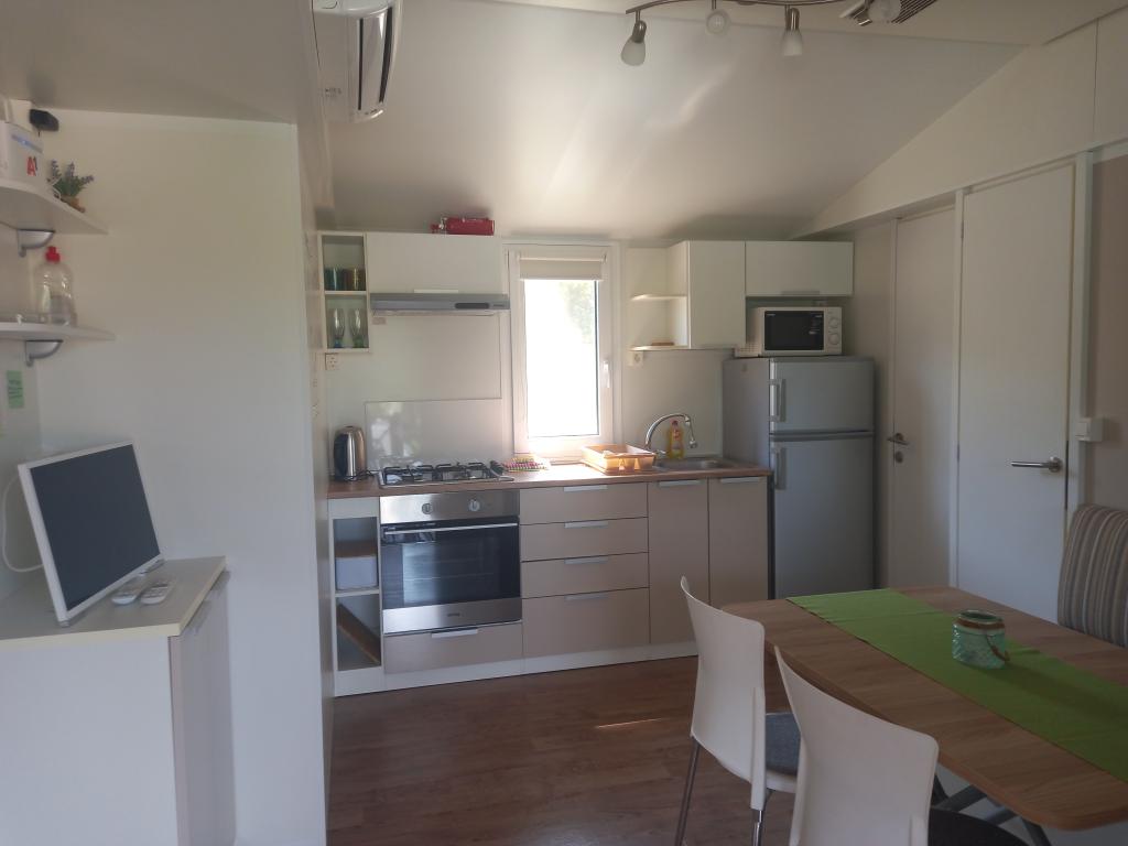 Pročitaj više Smještajne jediniceRezervacija je potvrđena nakon uplate akontacije 20% od ukupnog iznosa. U cijenu je uključeno: 4 plus1 osoba, parkirno mjesto za 1 automobil, pristup internetu, klima, posteljina i ručnici (izmjena osmi dan borvka), struja, plin, voda. U cijenu nije uključeno: završno čišćenje 50 eura, boravišna pristojba i jednokratna prijava koja se plaća na recepciji kampa. Izmjena gostiju svaki dan: prijava od 14h/ odjava do 10h. Minimalni boravak u sezoni je 7 noćenja. Minimalni boravak van sezone je 3 noćenja.