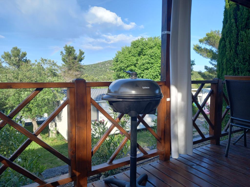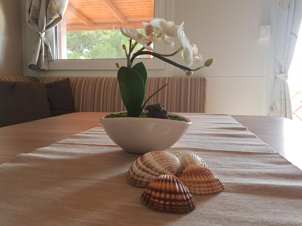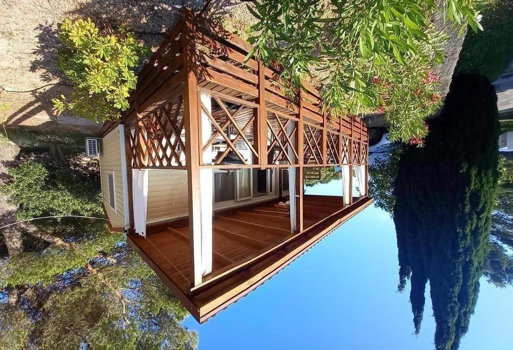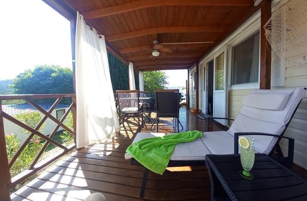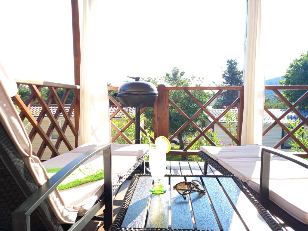 Luksuzno opremljena mobilna kućica (8x4m) kapaciteta 4 plus 1 osoba, nalazi se u prekrasnom kampu Jezera Village Lovišća na otoku Murteru. Kućica je smještena u mirnom djelu kampa svega 3 min hoda do plaže. Ima dvije spavaće sobe, dva kupatila sa tuš kabinom (sušilo za kosu na raspolaganju), plus vanjski tuš, te dnevni boravak sa potpuno opremljenom kuhinjom (pećnica, ploča za kuhanje, mikrovalna pećnica, hladnjak sa zamrzivačem, električno kuhalo, aparat za kavu, toster). Kućica ima klima uređaj (hlađenje/grijanje), te kablovsku TV, wifi. Velika natkrivena terasa 7x3 m opremljena roštiljem, garniturom za sjedenje i ručavanje, ležaljkama, te pogledom na more učinit će vaš boravak posebnim. Posteljina i ručnici su na raspolaganju (izmjena osmi dan boravka). Besplatno parkirno mjesto osigurano je uz samu kućicu.