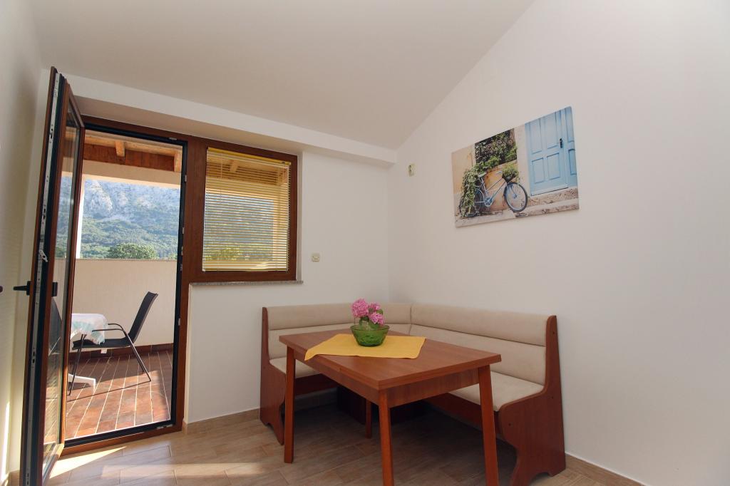 Apartmani se nalazi u mirnom mjestu Jurandvor kraj Baške, samo 20-ak minuta pješice od centra Baške ili plaže. U kući se nalaze 3 apartmana koji su opremljeni sa kuhinjom, kupaonicom, klima uređajem i besplatnim Internetom (Wi-Fi) ali nemaju TV. Od 3 apartmana, 2 imaju balkon dok 1 nema. Gostima na raspolaganju stoji besplatno parkirno mjesto ispred kuće kao i dodatan privatni parking u Baški u blizini plaže. Apartmanska kuća se nalazi 1.500 m od mora i 1.500 m od centra Baške, koji obiluje raznovrsnim trgovinama, restoranima te lokalnim atrakcijama. Kućni ljubimci nisu dozvoljeni.