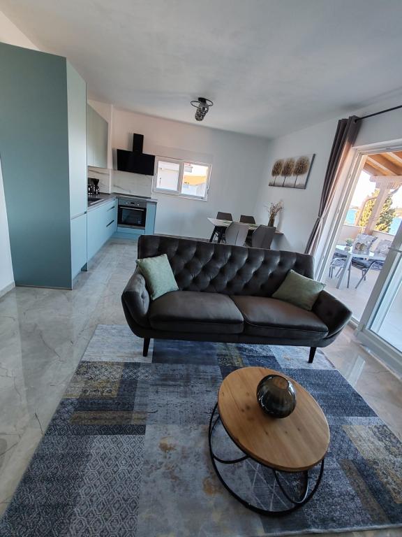 Apartman Nina (A6) nalazi se u mirnom mjestu Kali, na otoku Ugljanu. Apartman je udaljen 100 m od plaže, a sa terase se pruža pogled na more, otok Ošljak, Zadar i zadarski kanal. Prednost je potpuno nov i udoban apartman sa 3 spavaće sobe, velikim dnevnim boravkom, kuhinjom i 2 velike kupaonice. Da bi vaš boravak prošao u što boljem ambijentu opustite se i uživajte na natkrivenoj terasi .Za vašu bebu imamo dječji krevetić i hranilicu. Minimalni boravak 4 dana. Sunny Apartman (A2) je novi apartman sa 1 spavaćom sobom, kuhinjom i dnevnim boravkom, ima kupatilo i zaseban WC. Sa balkona se pruža prekrasan pogled na more. Minimalni boravak 3 dana. Azure Apartman (A4) idealan je za miran odmor s obitelji ili prijateljima. Uživajte u nevjerojatnom pogledu na more s prostrane terase, opustite se u udobnom interijeru s dvije spavaće sobe i modernom kuhinjom. Smješten samo dvije minute hoda od plaže. Na zahtjev je dostupan pomoćni ležaj i dječji krevetić. Minimalan boravak 4 dana.