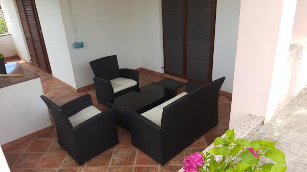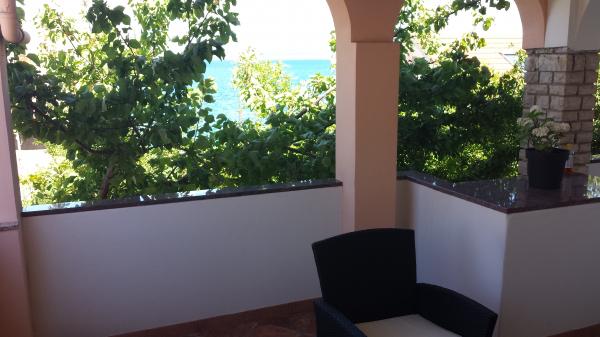 Klasicno namjesten i opremljen apartman smjesten u mirnom dijelu sela Kali. Objekt je prvi red do mora smjesten u suterenu objekta. Udaljenost od plaze je 40 metara. Terasa je s pogledom na more i vrt. Udaljenost do restorana, ducana i supermarketa je 10 minuta hoda. Udaljenost do trajektne luke za Zadar je 15-20 minuta setnjom uz more.