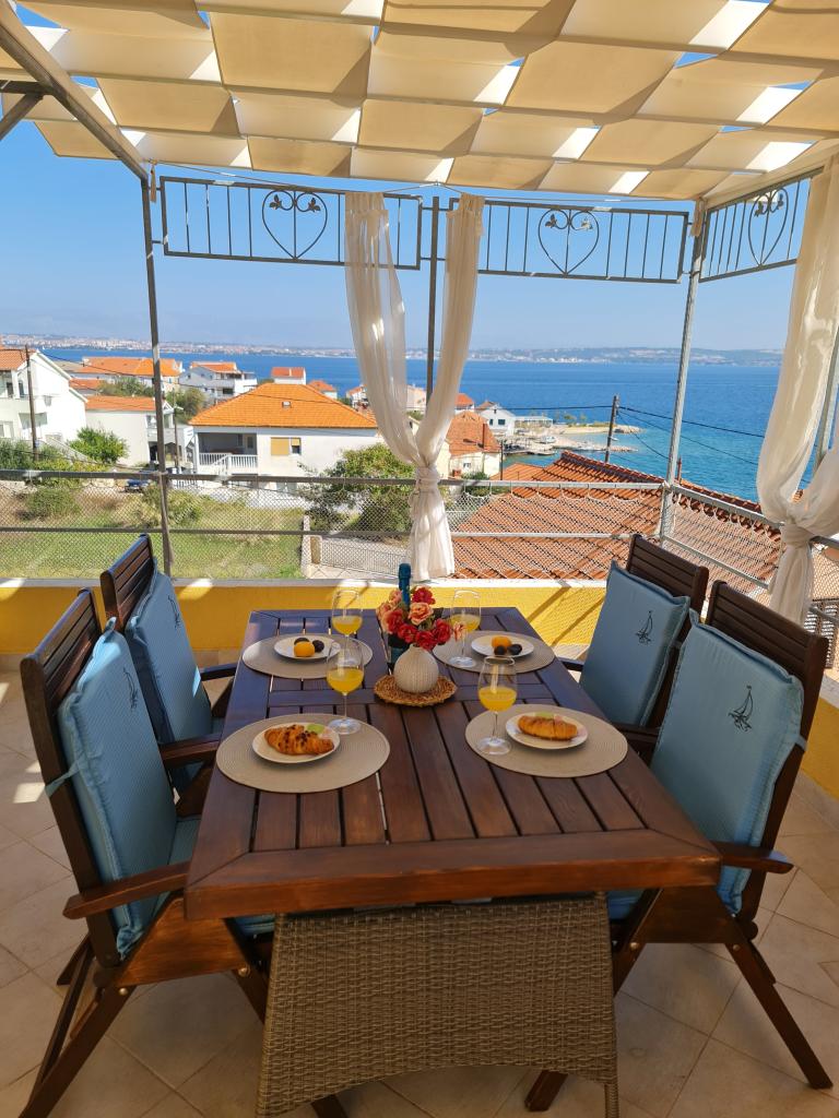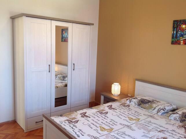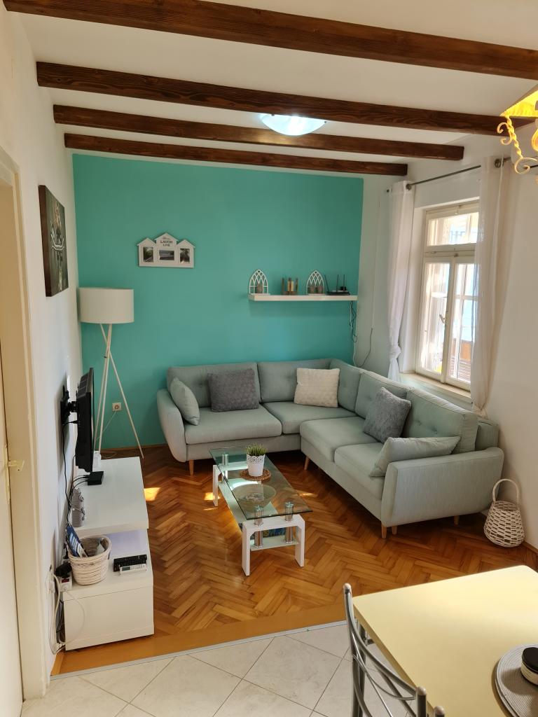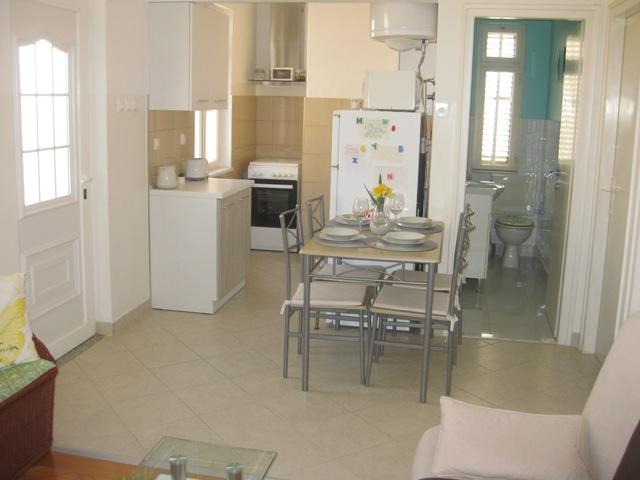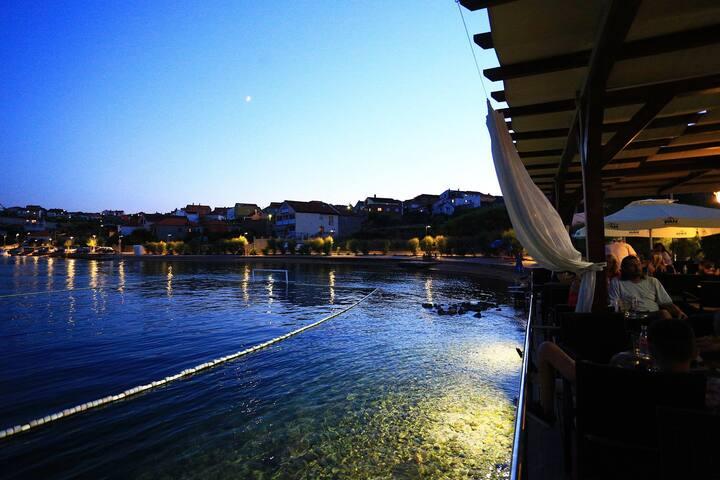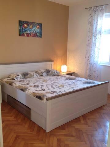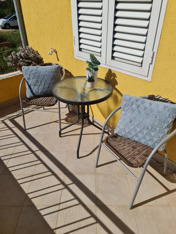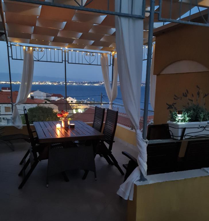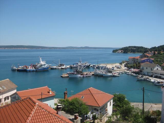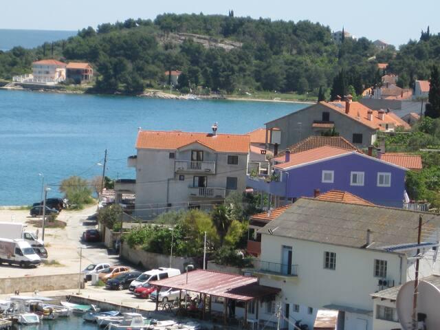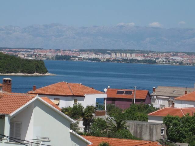 apartman tina je u centru kali u mirnom predjelu gdje nema prometa i guzve. restoran ducan kafici plaza su manje od 50 m daljine. apartman ima veliku uzvisenu terasu iz koje se lijepo vidi zadar plaza riblji restoran i luka tako da ako imate camac mozete ga vidit iz terace ima uvijek sunca i svjetla. autobusna stanica nije daleko pa je lako doci do trajekta. Apartman ima klime u svake sobe, prozori imaju mrezice u kuhinjni ima perelica rublje,kuhalo za vodu,microvalna. Apartman ima svoj parking.
