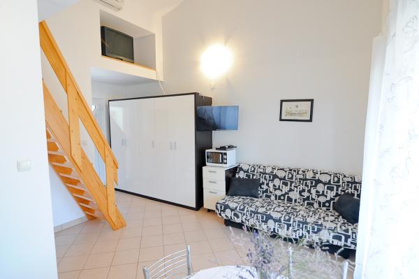 Apartman moderno i stilski namjesten, jako funkcionalan i cist. Kreveti udobni, posteljina, rucnici, fen, pa cak i toalet papir i sapun, sve smo to zatekli u aparmanu. Topla voda bez bojlera. Kuhinja nova sa svim pomagalima, potpuno namjestena i opremljena posudjem. Tarase su sa prekrasnim pogledom na uvalu, udaljenu svega stotinu metara. Mjesto je jako tiho i idealno za poptuni relax. Vlasnici su jako ljubazi i na usluzi za savjete svakakve vrste. Plaza sjenovita i pješčana, svako si moze naci svoj kutak. IDEALNO za porodicni odmor! Sve pohvale i puno srece u daljem radu! Porodica Skopljak