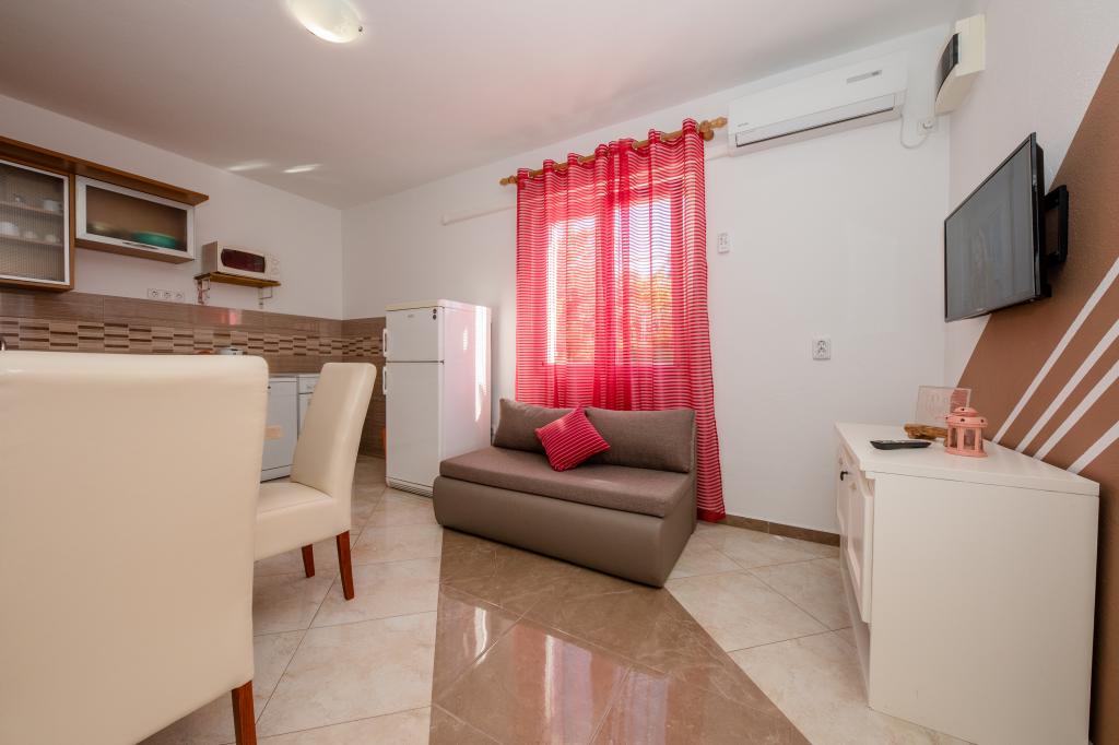 Tiho, čisto. Prekrasan pogled na more. Danijela je vrlo ljubazna i draga. Dobro opremljena kuhinja. Mogućnost roštiljanja i sjedenja vani. Pogodno za obitelji sa malom djecom. Blizina plitke i pješčane plaže.