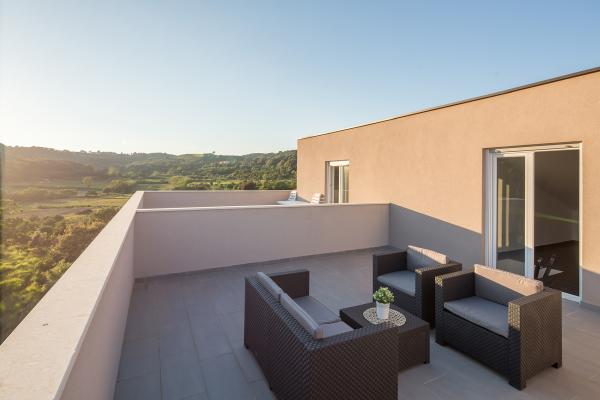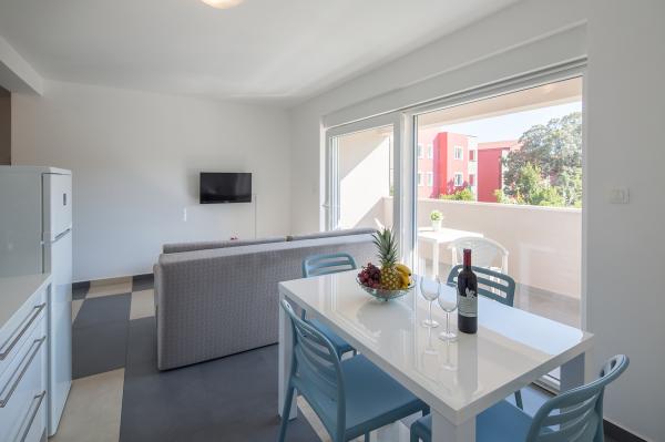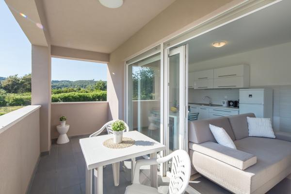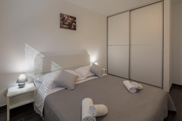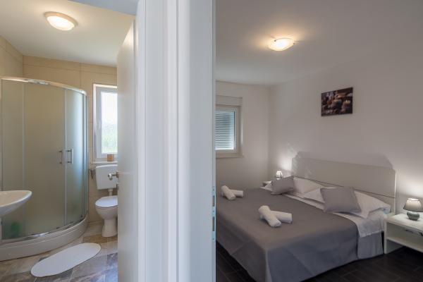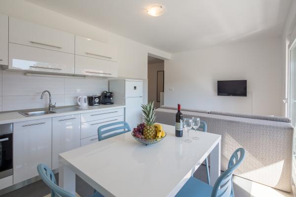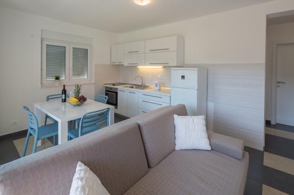 Moderni apartmani, potpuno novo opremljeni u lijepom i mirnom predjelu sunčanog otoka Raba. Objekt se sastoji od 3 apartmana. Dva apartmana su veličine 50 kvadrata i omogućuju smještaj za maksimalno 4 osobe (2 2). Sastoje se od spavaće sobe sa prostranim bračnim krevetom, kuhinje sa blagovaonicom te kaučom na razvlačenje, wc sa kupatilom i velikim balkonom sa stolom i stolicama. Treći apartman veličine 70 kvadrata se nalazi na dvije etaže i omogućuje smještaj do 6 osoba (4 2). Sadrži dvije sobe. U jednoj sobi se nalazi prostrani bračni krevet, a u drugoj sobi na katu dva odvojena kreveta te izlaz na veliku terasu sa ležaljkama i pogledom na more. Apartman sadrži kuhinju sa blagovaonicom i kaučom na razvlačenje, wc sa kupatilom te balkon sa stolom i stolicama. Dostupno gostima: - besplatni internet - kabelska tv sa više od 200 programa - potpuno opremljena kuhinja - klimatizacija - glačalo - sušilo za kosu - besplatan parking DOBRODOŠLI!!!!