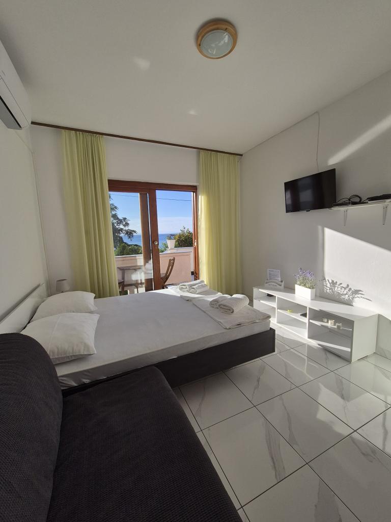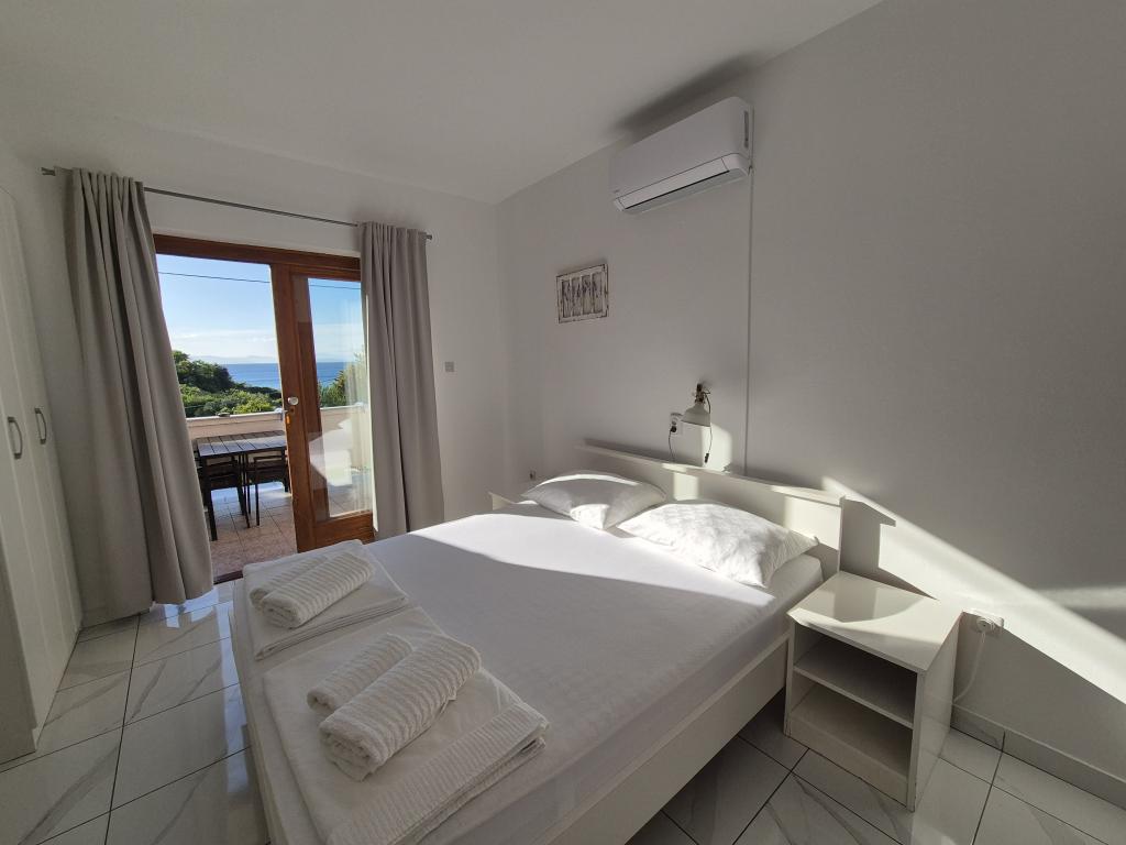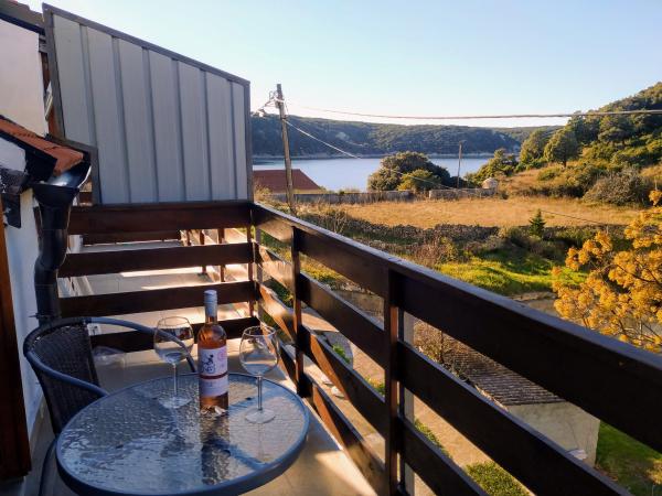 Apartmani se nalaze na mirnijem i izoliranom dijelu otoka Raba omeđeni malim brojem kuća, gotovo neprimjetnim prometom te minimalnim doticajem s vanjskom okolinom koji pruža osjećaj savršenog mira i potpune prepuštenosti odmoru. Vas i vašu obitelj dočekat će lijep i uredan prostor s direktnim pogledom na more koje je udaljeno svega pedesetak metara (pješice) s više vrsta plaža u samom okruženju, idealnim za bračne parove sa djecom. Kuća se sastoji od dva apartmana (svaki za četiri osobe) i dva studio apartmana (svaki za tri osobe). Sve je kompletno obnovljeno 2018. godine. Apartmani i studio su cijelovito opremljeni te uključuju SATV, internet, klima uredjaj i osiguran parking. Najveća odlika našeg prostora je savršeno miran okoliš koji je popraćen zvukovima zrikavaca, galebova, valova i ponekog turističkog broda. Promet oko apartmana je jako rijedak i nema preopterećenosti turistima, autima i objektima. Djecu možete bezbrižno poslati na plivanje i igranje.
