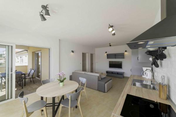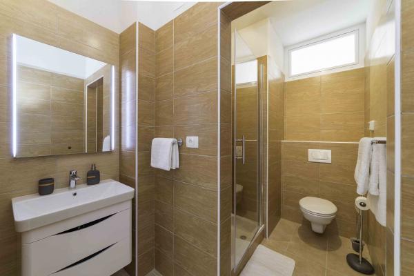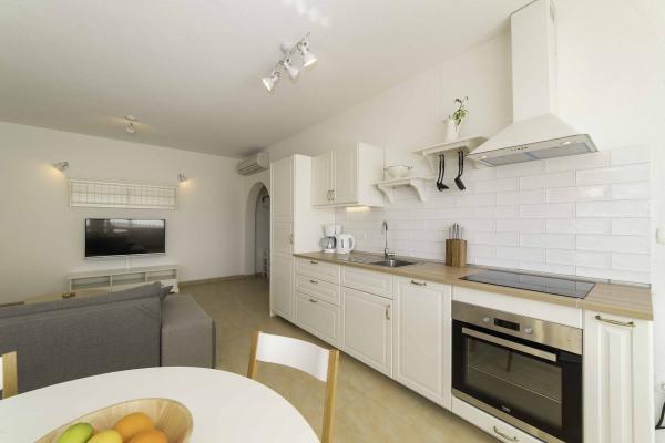 Apartmani sa pogledom na more s mogućnošću korištenja roštilja. Opcija je vez za gliser u blizini. Najam glisera nalazi se također u blizini (potrebno imati dozvolu za upravljanje brodicom). Raspoloživ parking uz apartman. Udaljenost od mora iznosi 100m zračne linije, odnosno 300m hoda ili vožnje. 6min pješice. Dječje igralište sa plažom također je 300m od kuće. Unutar manje od 1km nalaze se restorani, market, kafići i ronilačka baza. Najam bicikle moguće je dogovoriti u lokalnom servisu - trgovini bicikala, a lokacija apartmana pogodna je i za one koji uživanju u hodanju ili trčanju prirodom.