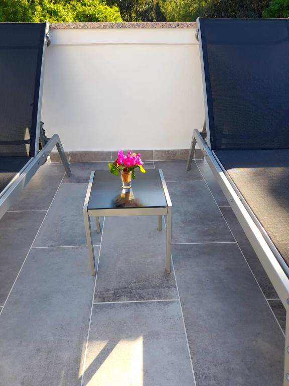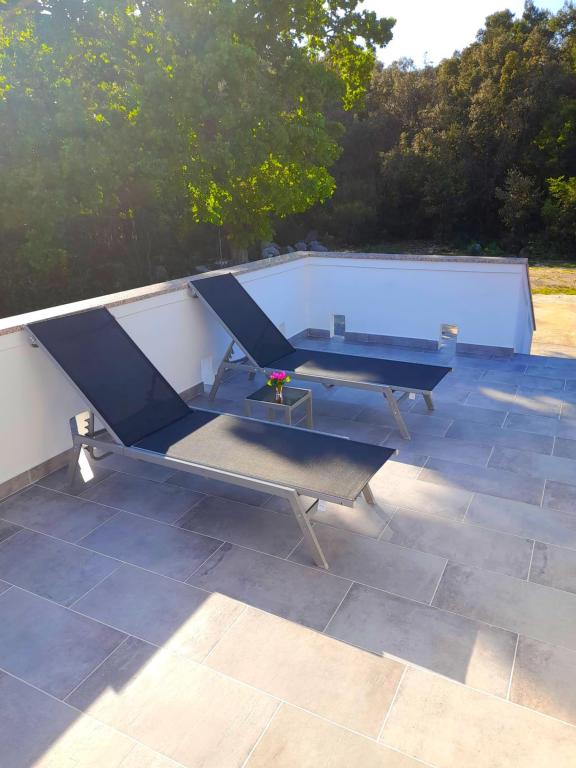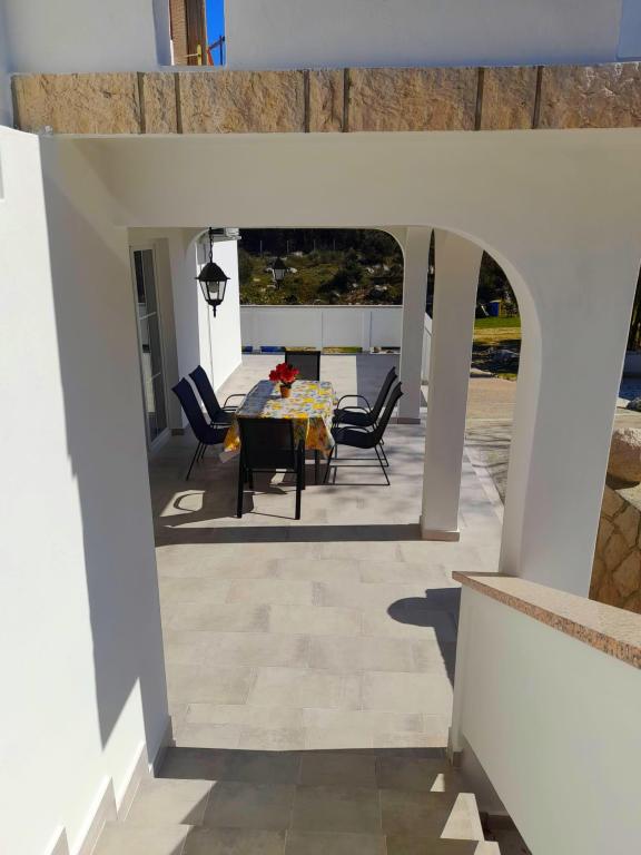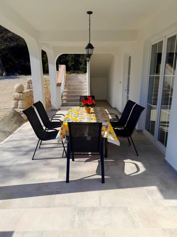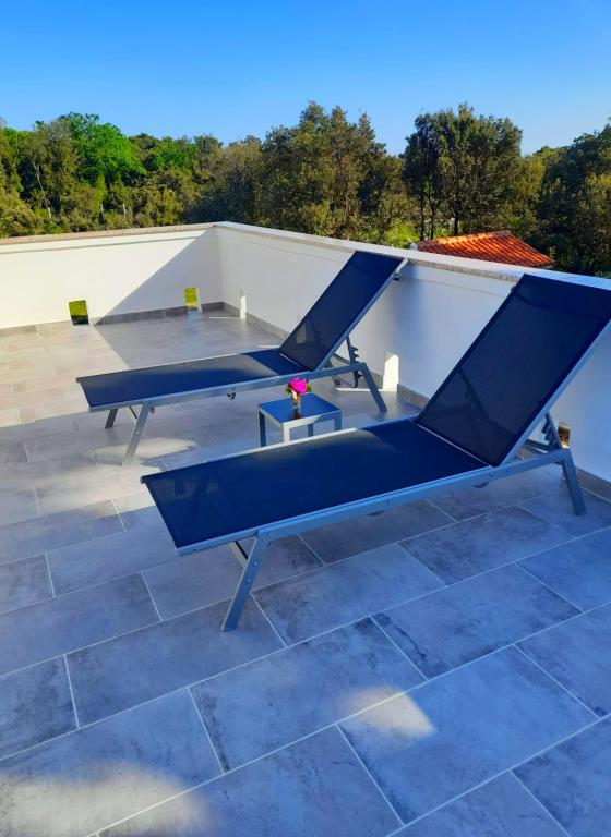 Ovaj apartman se nalazi u šumskom predjelu i u neposrednoj blizini plaže i mora. Na idealnoj je lokaciji za provesti opuštajući odmor u miru i tišini. Apartman A4+2 (do 6 osoba) se nalazi na prvom katu i veličine je oko 100 m², a sastoji se od sljedećih prostorija: potpuno opremljene kuhinje s dnevnim boravkom u kojem se nalazi klima uređaj, TV ravnog ekrana sa satelitskim programima i kauč na razvlačenje za dvije osobe (gdje mogu spavati 2 osobe), 2 spavaće sobe s bračnim krevetima (širine 1,80 m) i 2 kupaonice s tušem. Apartman ima balkon, terasu kod ulaza, krovnu terasu, vlastiti roštilj i parkiralište. Najbliža plaža je udaljena oko 700 metara i do nje se može doći pješice za samo 10 minuta (najbrže je šumskim prečacem).